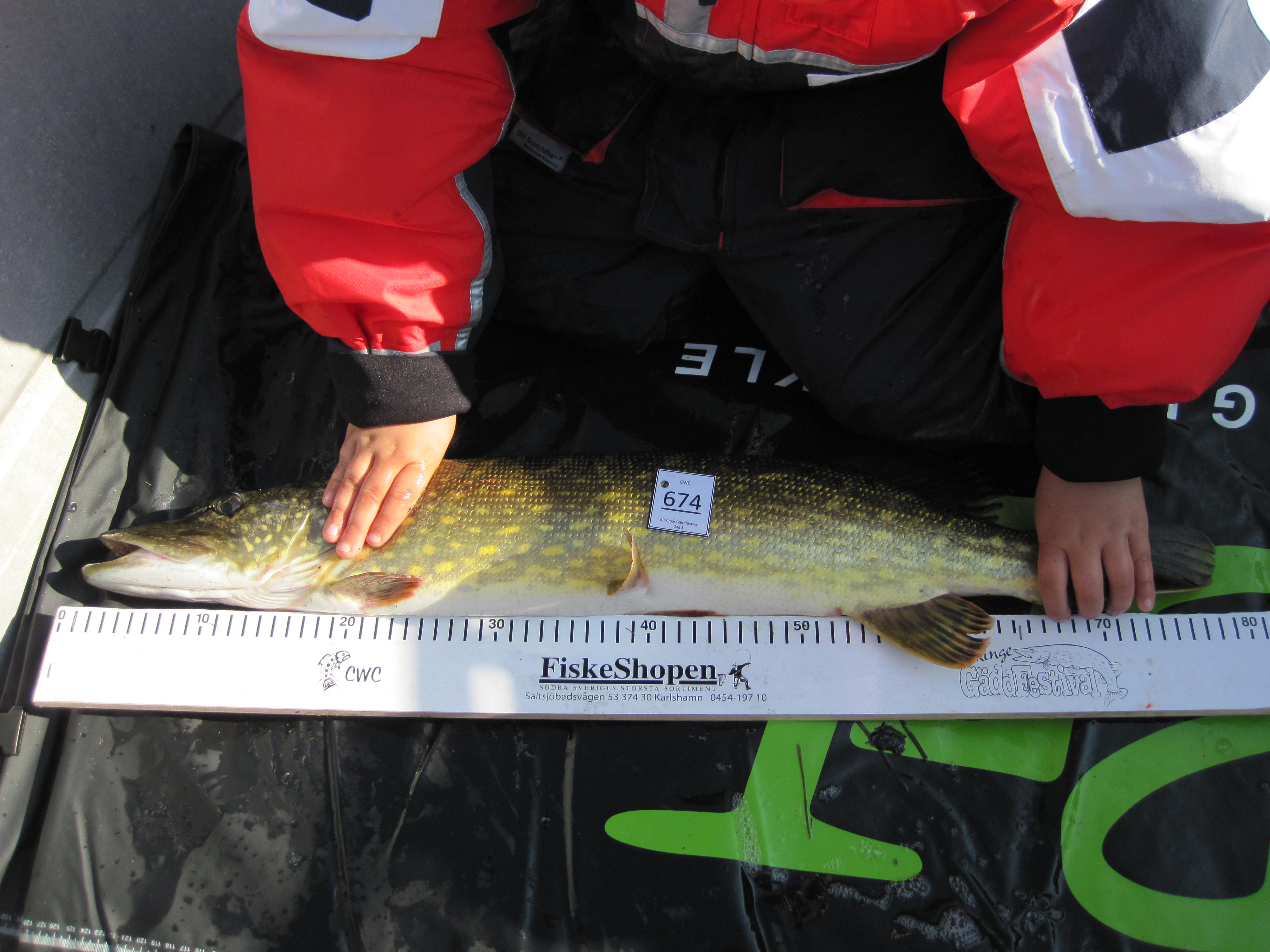 Willys gädda: 76 cm lång med en vikt av 3,4 kg. Jämnare kan det knappast bli i familjetävlingen.