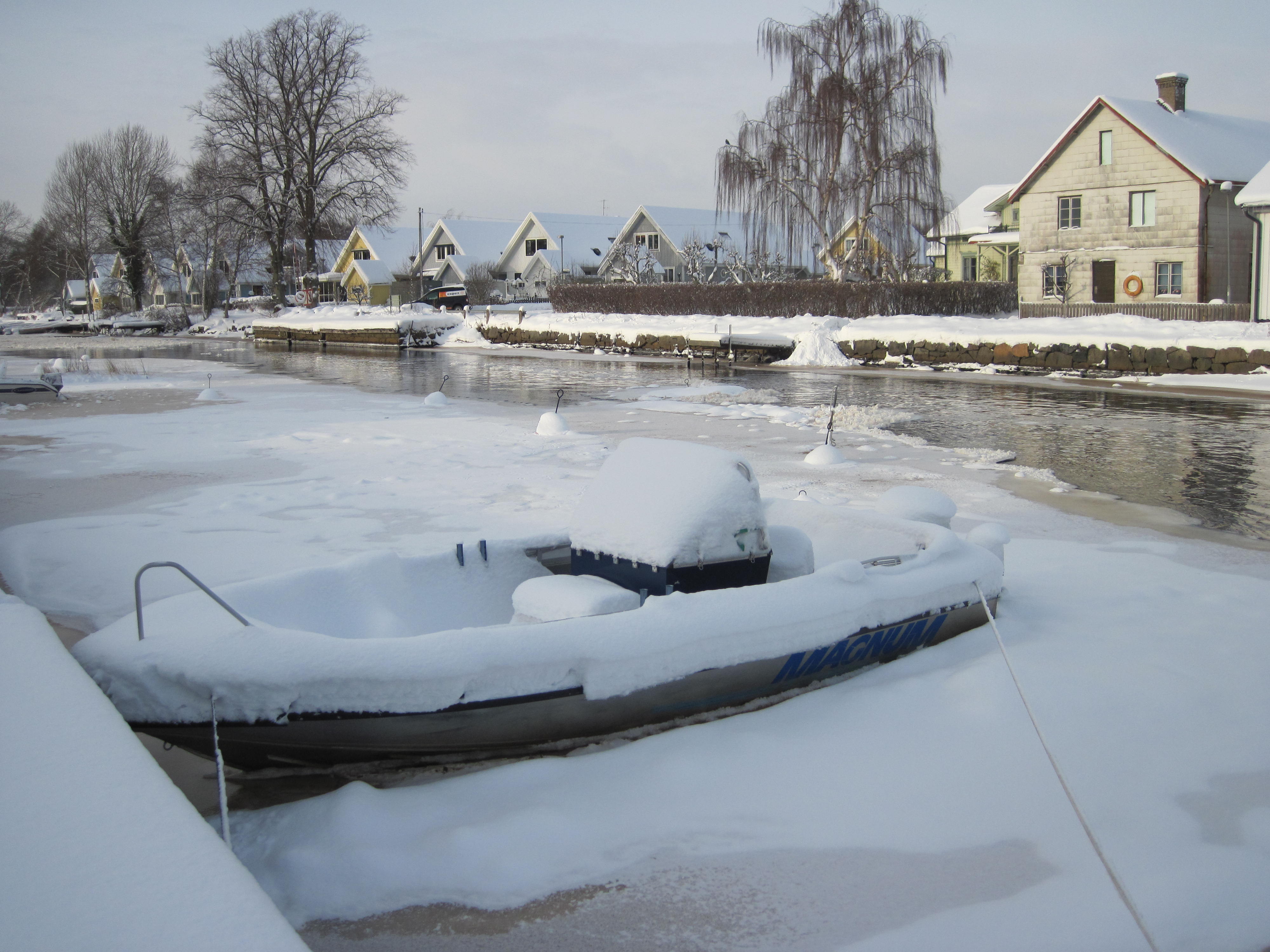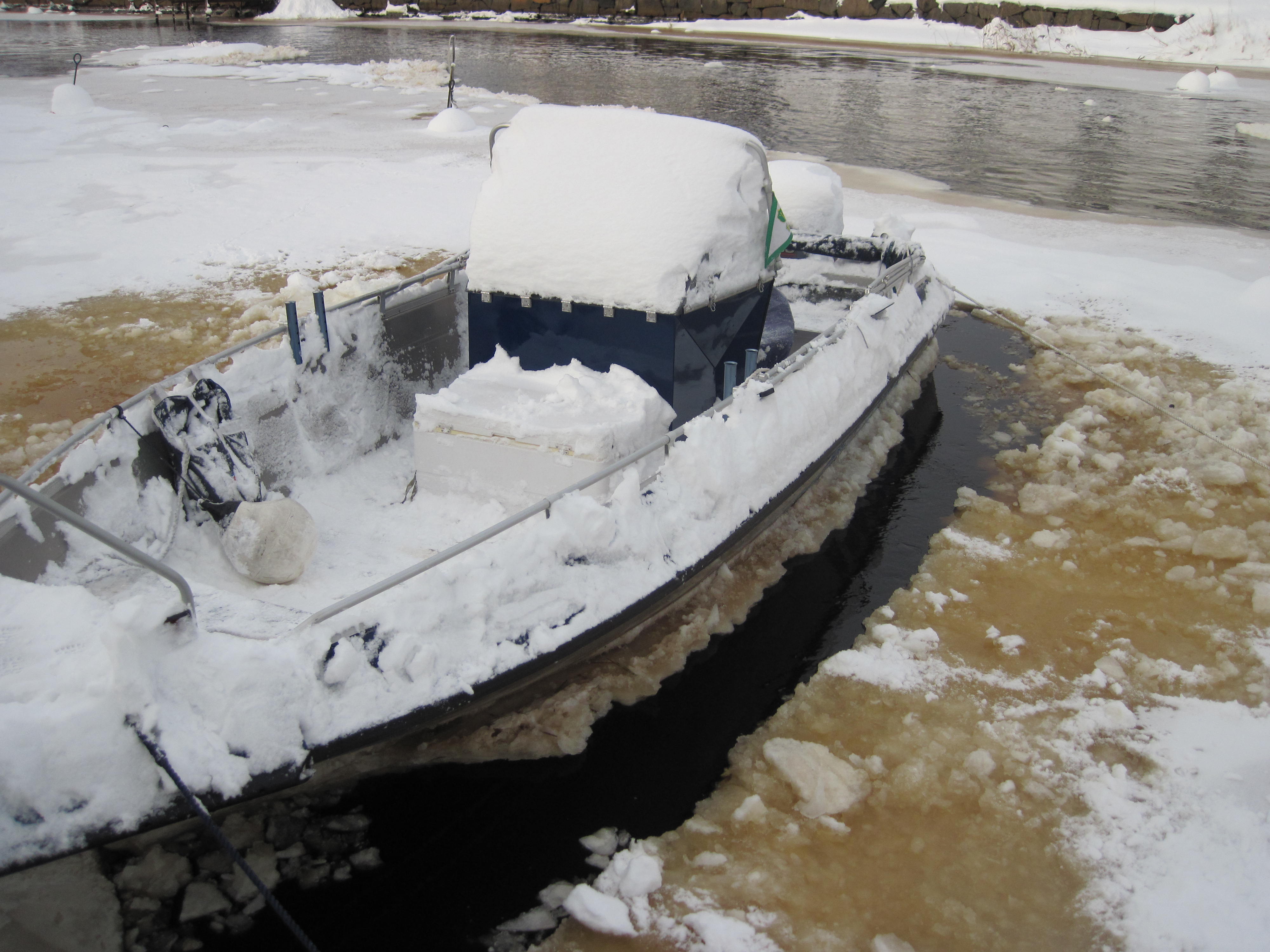 Själv räddade jag båten i sista stund. Fick dra henn genom den tunna isen. dagen efter hade det varit kört. Då var det redan ett par centimeter is. Det kommer dock snart mildaren väder. Så det är väl bara att ligga lågt ett tag. Antagligen öppet vatten till jul.