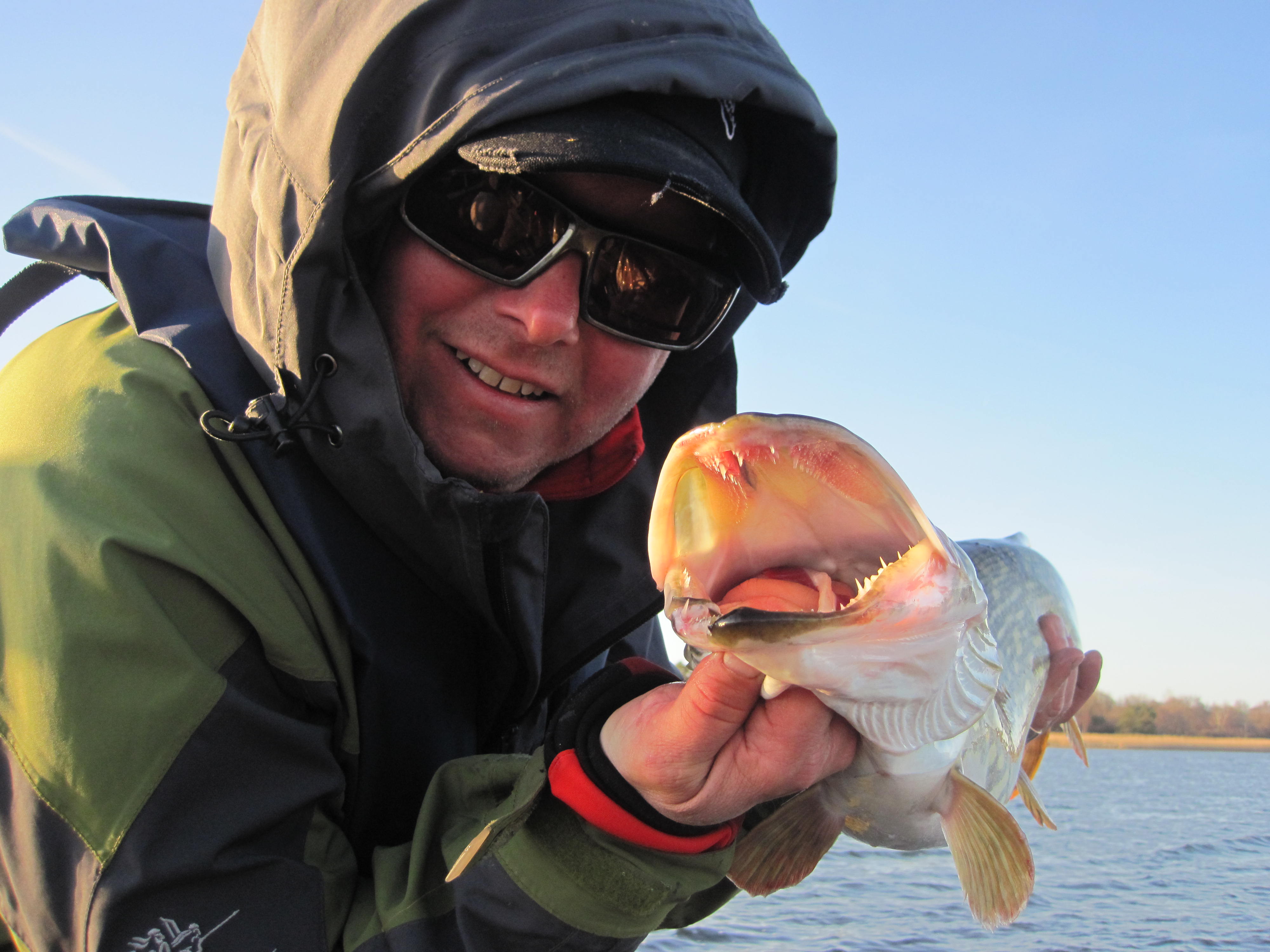 Två filurer i närbild. Gäddan högg när jag tog hem betet sommarsnabbt utan jerkryck eller vevstopp. Så kan det vara i en vårvarm grundvik.