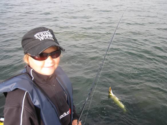 Jag tyckte att vädret verkade ok för fiske när jag klev upp vid 06:30. Vädret var lite mulet och vinden obefintlig men från syd i alla fall. Vi åkte till ett grundparti utanför Tjurkö men det var inte våran cup of tea. Att fiska lite djupare med vobbler kändes långtråkigt så vi vände inåt för jerkbaitfiske i tången på ca två meters djup. Nu blev det kul igen och jag fick upp min första gädda på pigen-kanske har jag änligen fått in snitsen på intagningen av detta klassiska bete. Nåväl jag fiskade även med big bandit bruntorsk som även idag lurade upp två gäddor. Willy fiskade med haspel idag och agnade med 4play-detta fungerade också perfekt han fick upp tre gäddor. Totalt mellan klockan sju till tio landade vi 6 gäddor och samtliga var i trekilos klassen, vi hade kontakt med många flera gäddor under morgontimmarna så fisket var kul i dag.