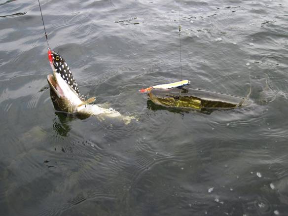 När det blev mulet väder lossnade fisket och Viktor och jag drillade in varsin gädda. Det är alltid kul och uppfriskande med ett dubbelhugg.
