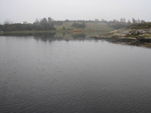 Uppe och ute i vedhögen klockan sju tillsammans med klyvyxan och huggkubben. Vi hade några timmars slit med resterande ved och med att plocka ihop och städa huset innan vi hade tänkt att åka med båten till Lyckebyån. Klockan ett var vi startklara och vi kunde börja fiska strax därefter. Det var dimma och väldigt lite vind även idag men Willy tog en gädda på första stoppet så det verkade ju lovande. För mig gick det sämre, under hela dagen så sjönk självförtroendet och jag gjorde djupdykningar i beteslådan då Willy drog gädda efter gädda och mina kontakter uteblev. Jag lyckades faktiskt inte få upp en enda gädda under dagen. Dåligt kan bli sämre och när vi ska åka hemåt för kvällen så har batterispänningen sjunkit så lågt att det inte går att få fart på V6:an. Det är bara att titta på sjökortet vilket som ligger närmast Lyckebyån eller Skällenäs. Vi uppskattade att Skällenäs låg närmast så det var bara att sega sig fram i fyra knop medans mörkret föll över oss. Som tur var fungerade den lilla motorn felfritt och vi kunde lägga till vid våran brygga i lanternornas sken utan några missöden.