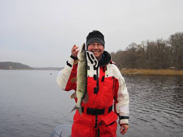 Jag hade tagit ledigt från jobbet denna fredagen för att ev fiska om det fanns någon som ville följa med. Som tur var så var Team Predatorfiske på besök i Karlskrona skärgård denna helg så Martin och Anders mönstade på i Bustern eftersom deras båt är i minsta laget för att fiska tre ifrån. Vi fiskade både långt in i grundvikarna och i mellanskärgården men de stora gäddorna lyste med sin frånvaro och kontakerna med gäddor var inte så många heller. Totalt landades sex små snipor så vi blev inte nollade. Sammanfattningsvis hade vi flest kontakter i mellanskärgården på läsidan där vattnet var ca 1 grad varmare än i de kalla grundvikarna. I morgon så är det dags för ännu ett gäddpass. Hoppas att det kommer upp någon finare fisk då.