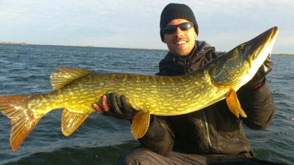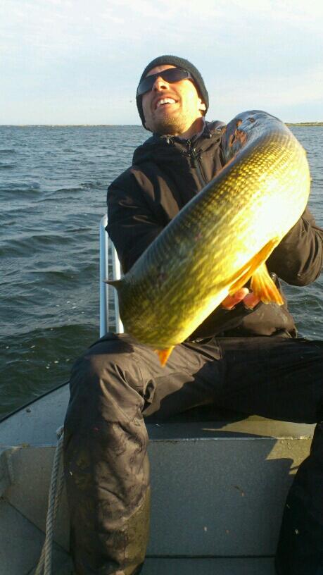 På sex dagar fick mannarna upp 144 gäddor i varierande storlekar. fyra var över 90 cm och ca tio var över 85 cm. Men det är den första dagens fiske som teamet kommer att komma ihåg och kanske prata om under någon vinterkväll när båten ligger på land med snö över sig.