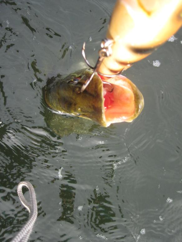 Det var inget fel på huggen eller kontakterna men de gäddor som vi fick under gäddturen var alla under tre kilo. Klockan hade nu blivit sex och det kurrade i magen så vi beslutade oss för att åka till brofästet i Möcklösund för att dricka kaffe och äta kroppkakor. Det gick bra att förtöja fast bryggkanten är väldigt hög och man behöver klättra för att komma upp på bryggan. Bryggan verkar anpassad för oceanångare. Vi var nu riktigt hungriga och blev superbesvikna när det var stängt. Vi såg ingen skylt men jag misstänker att de stängde klockan sex. Efter detta nederlag så åkte vi hem och grillade korv som serverades med potatissallad. Mums!!