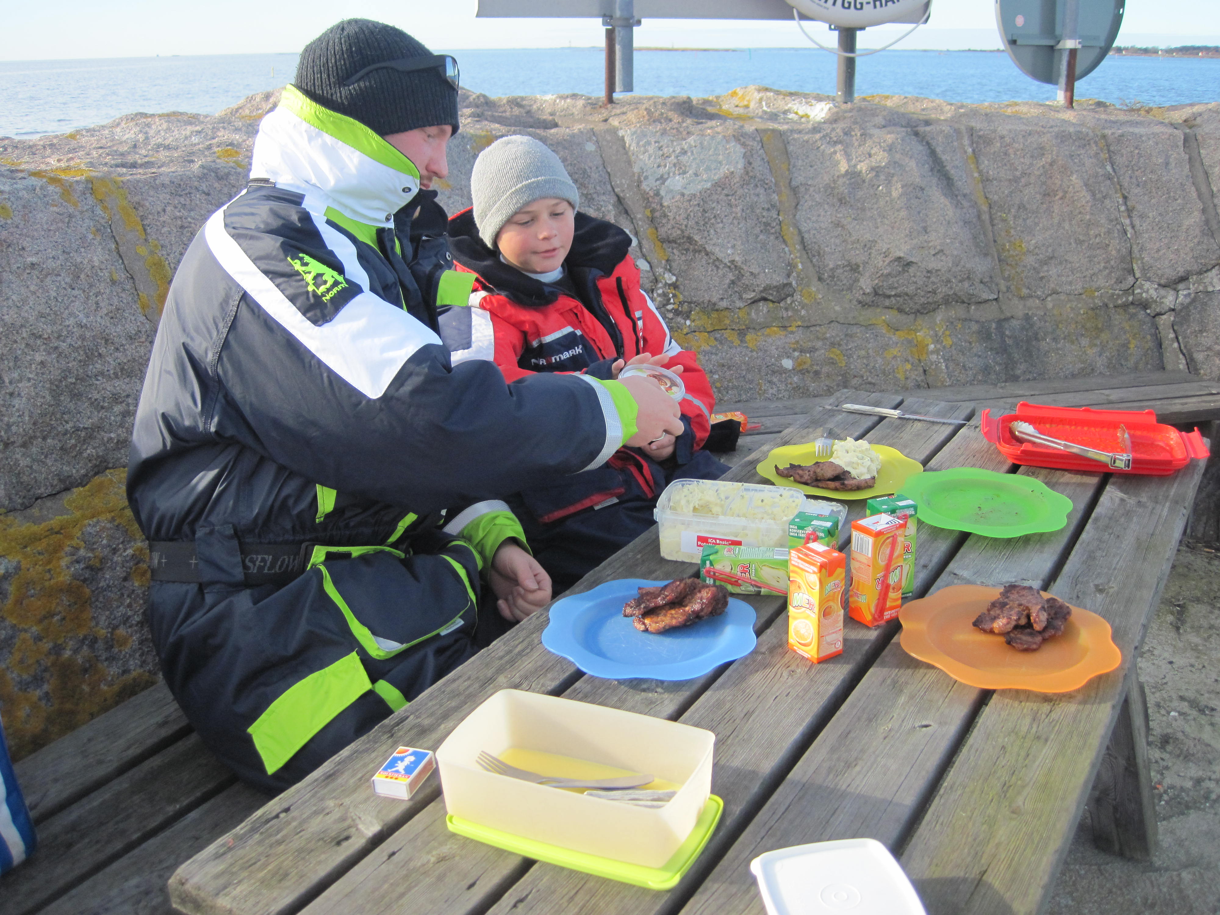 Här var det helt vindstilla och det kändes meningslöst att nöta på så vi förflyttade oss utåt i skärgården. Vi fiskade på flera ställen som brukar leverera gäddor men idag var dom försvunna. Rätt som det var så kom vi i närheten av Ungskär, magen kurrade så vi la till båten i hamnen.