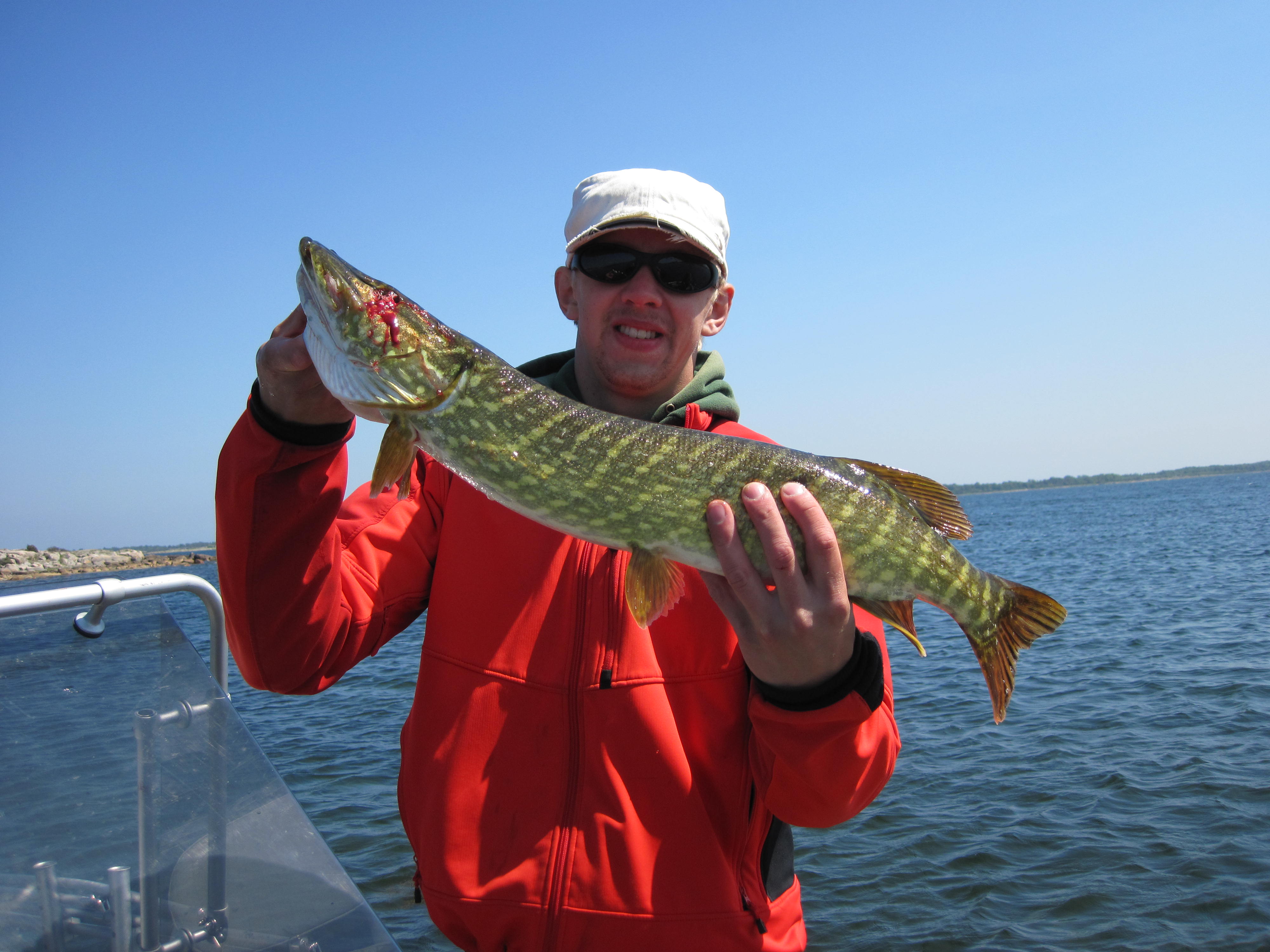Vinden tilltog och nu gick det riktiga vitingar och vi valde ett ställe där den sydliga vinden låg på. Det kändes rätt men även här landades snipor, jag sa att nu tar jag sista kastet och döm om min förvåning när en fin gädda på 90 cm och en vikt av 5,4 kilo kliver på. Gott mos och jag gör en high five med en blödande tumme efter en klantig avkrokning strax innan.