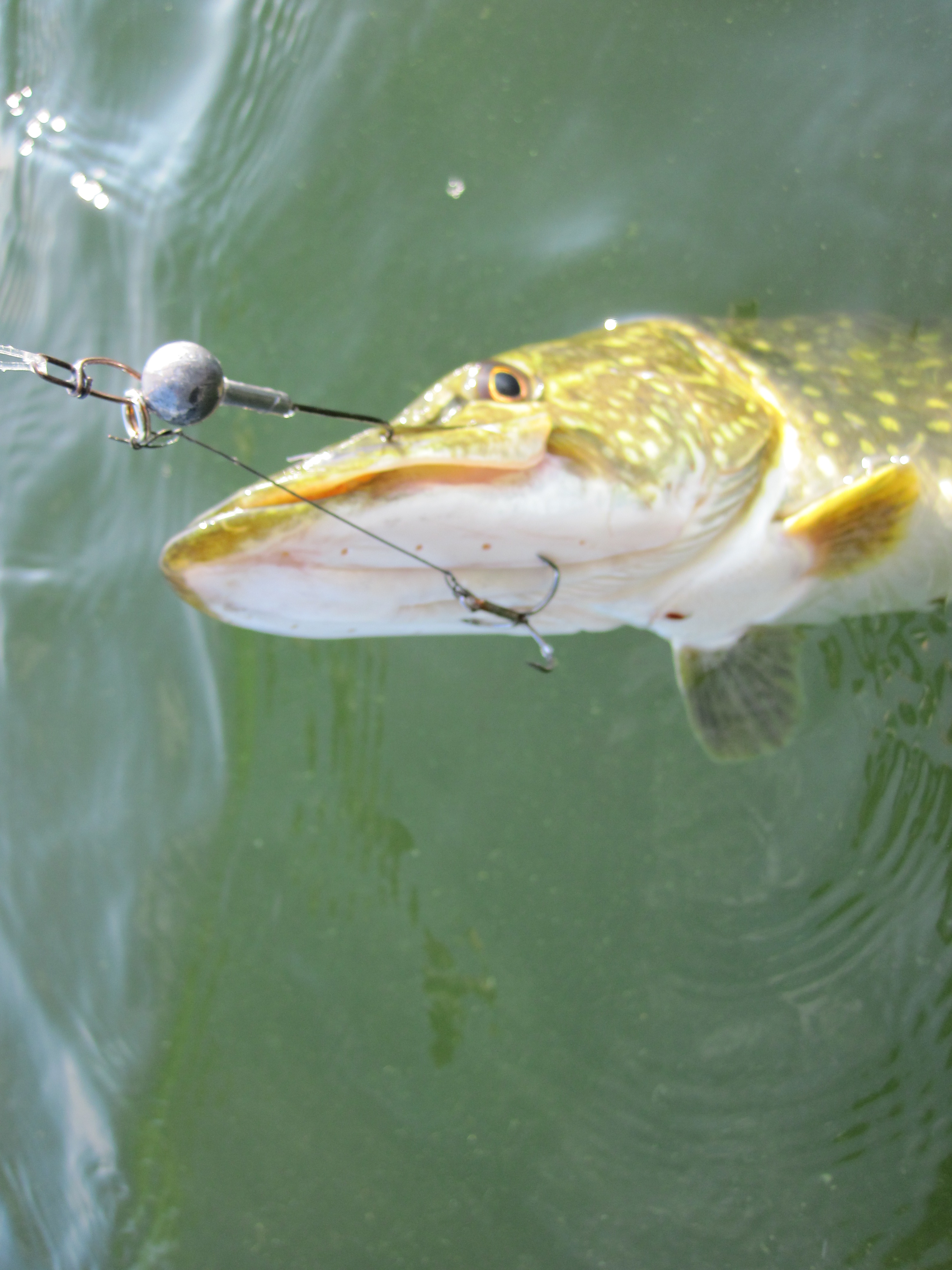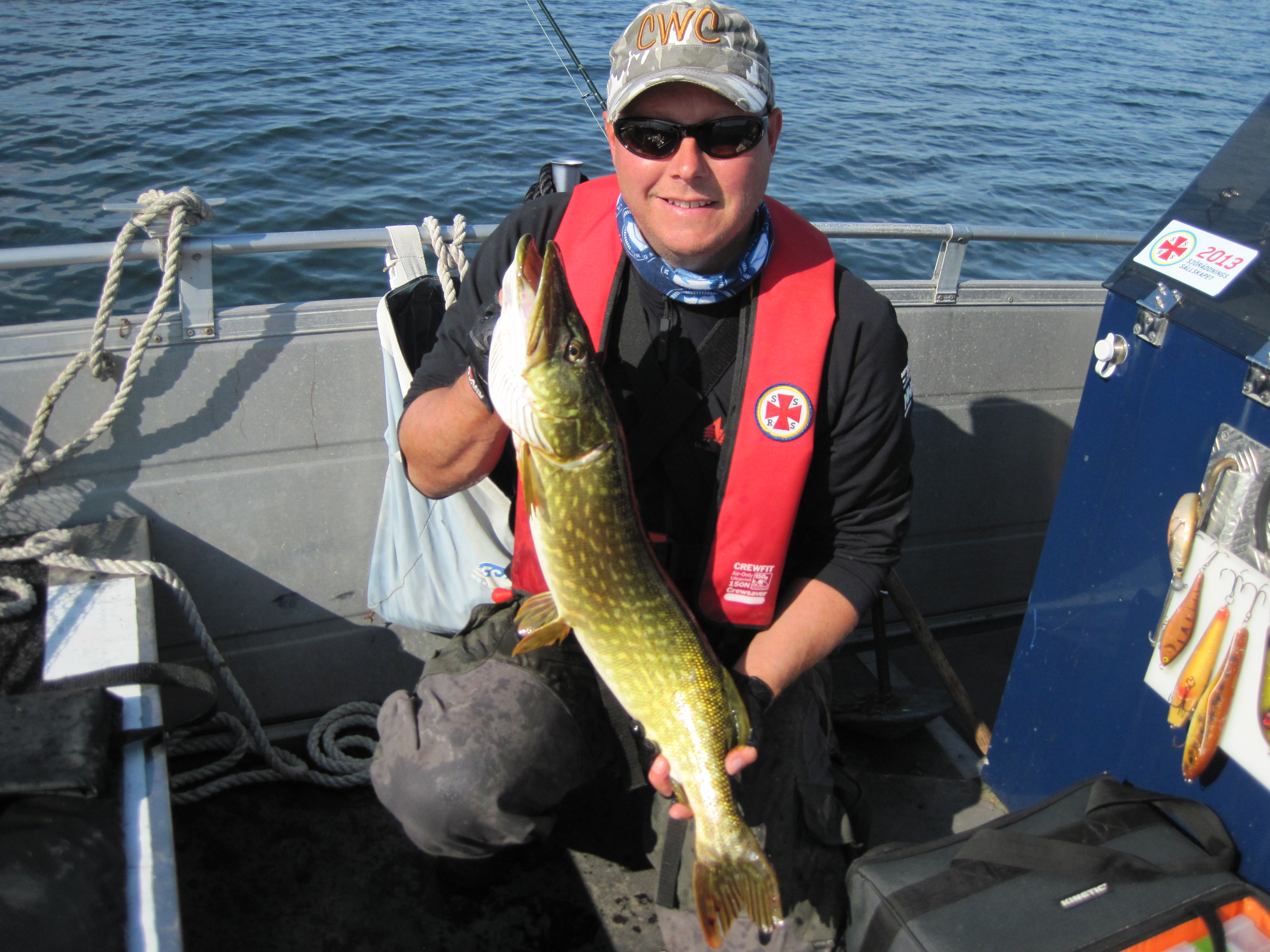 Gäddorna föredrog helt klart jiggen och massakerade den totalt, Willy tog ledningen med sex gäddor innan jag landade min första som var ganska fin. (83 cm)