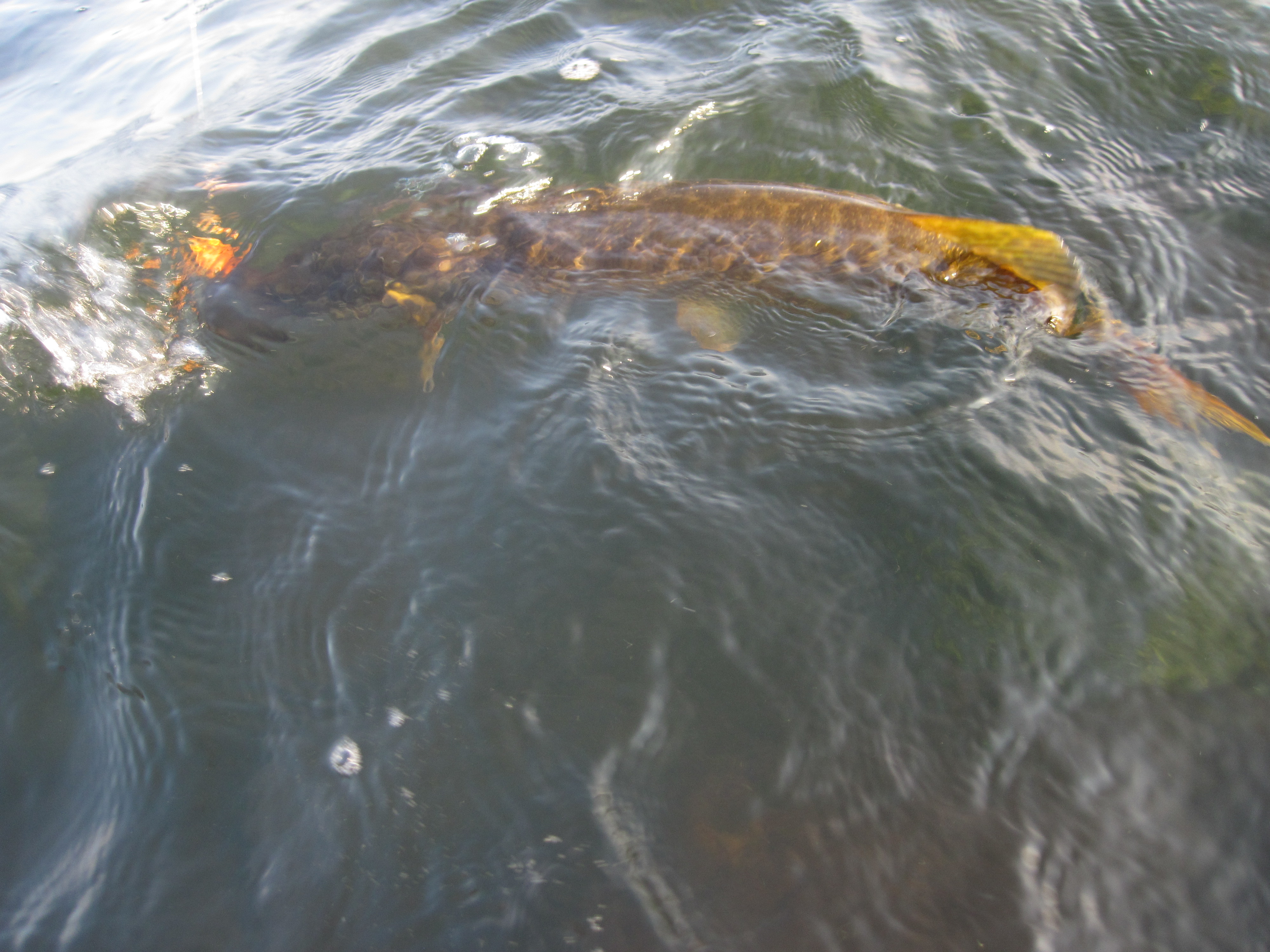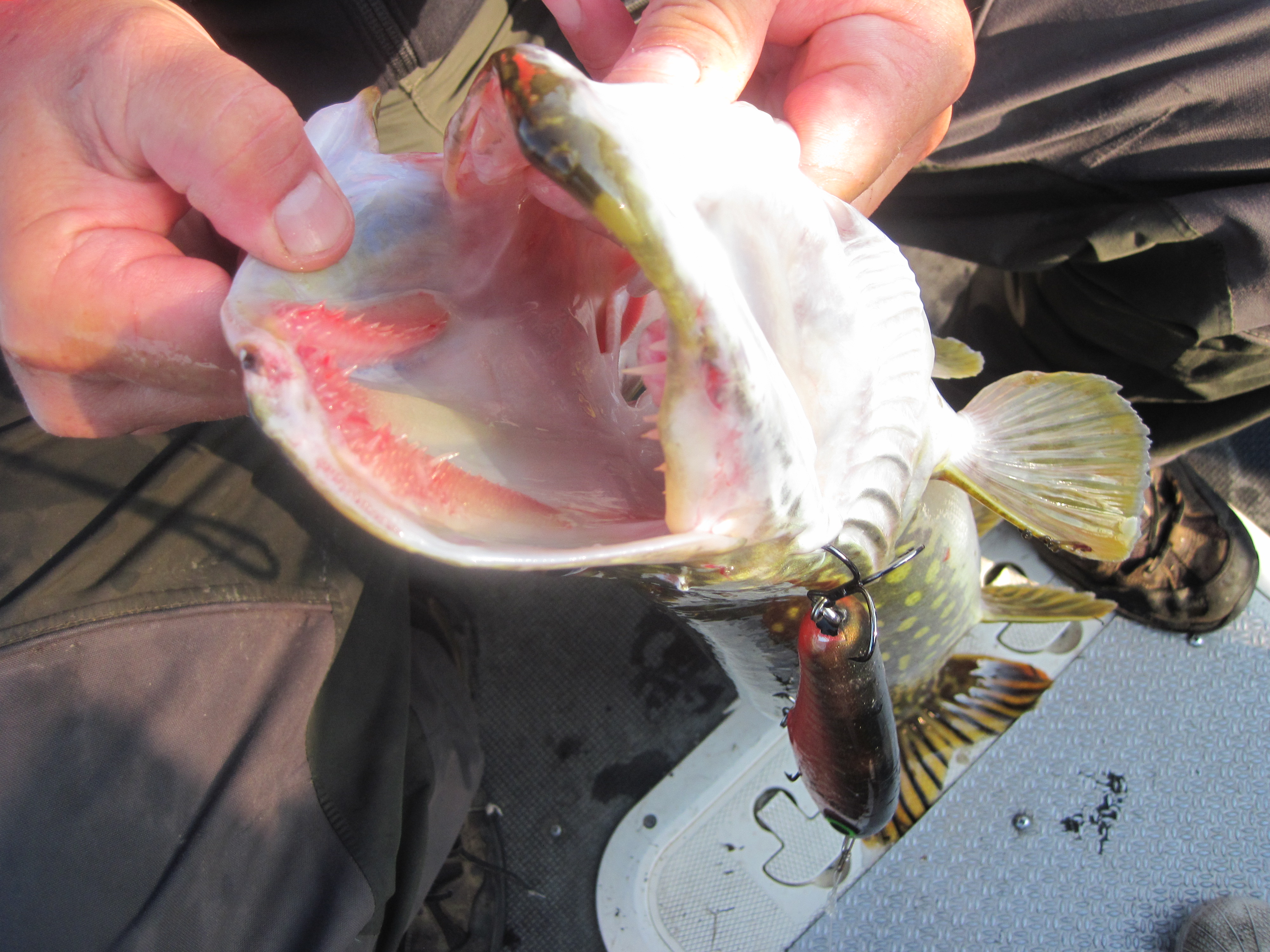 Så fortsatte morgonen, på vissa ställen kom det bara upp någon strögädda och på nästa stopp så fanns det riktigt bra med fina huggvilliga gäddor. Vid ett tillfälle så drillade jag en 80 cm gädda och strax bakom simmade en gädda till i samma storlek. Hon var riktigt intesserad av vad som hände. Det är så kul att fiska i riktigt klart vatten och hinna uppfatta endel av gäddornas betende när dom inte har något bete i munnen