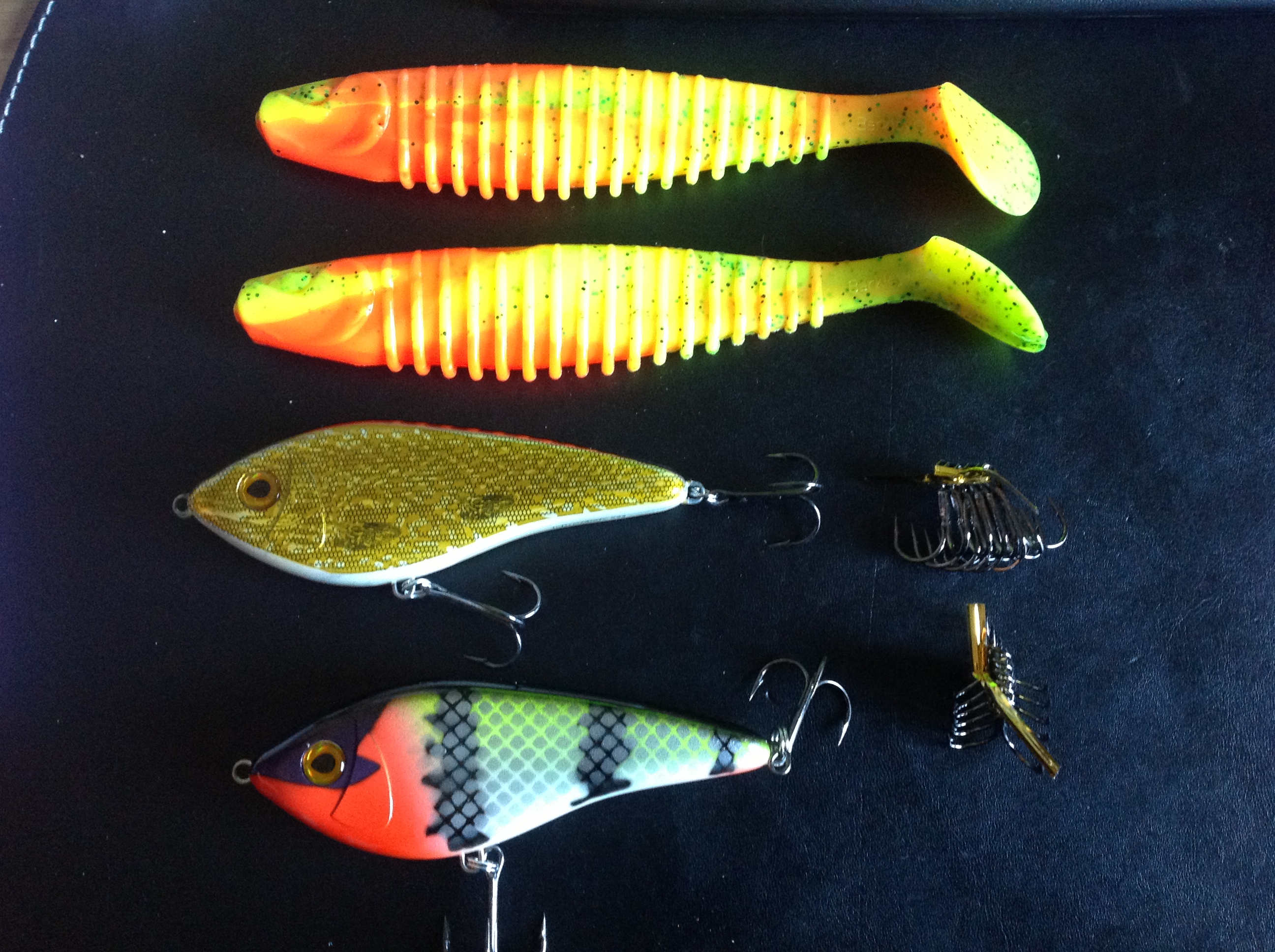 Jag hade kompletterat upp betesboxen med lite nytt, både hårda och mjuka beten, vilka skulle leverera bäst? Jerkbaits från Westins. 53 grams suspendering och några jiggar i grönorange färg.