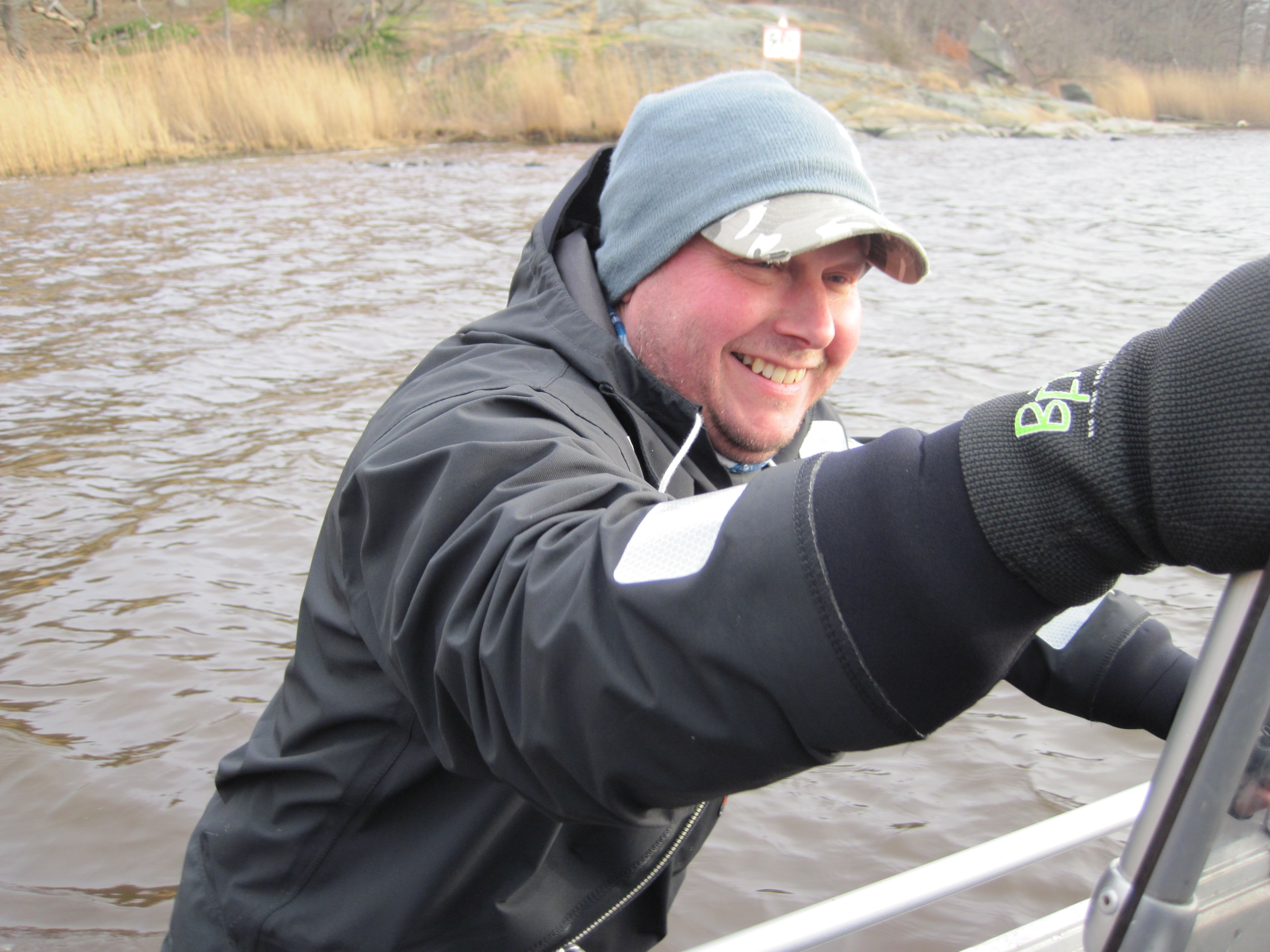 Vattnet var riktigt lågt, ca 30 cm under normalvattenståndet så vi fastnade i dybotten vid ett tillfälle när vi åkte närmare land för att hämta mitt bete som hade fastnat i botten. Jag var tvungen att hoppa ned i vattnet och dra loss båten med handkraft. Tur att jag har en bra torrdräkt.