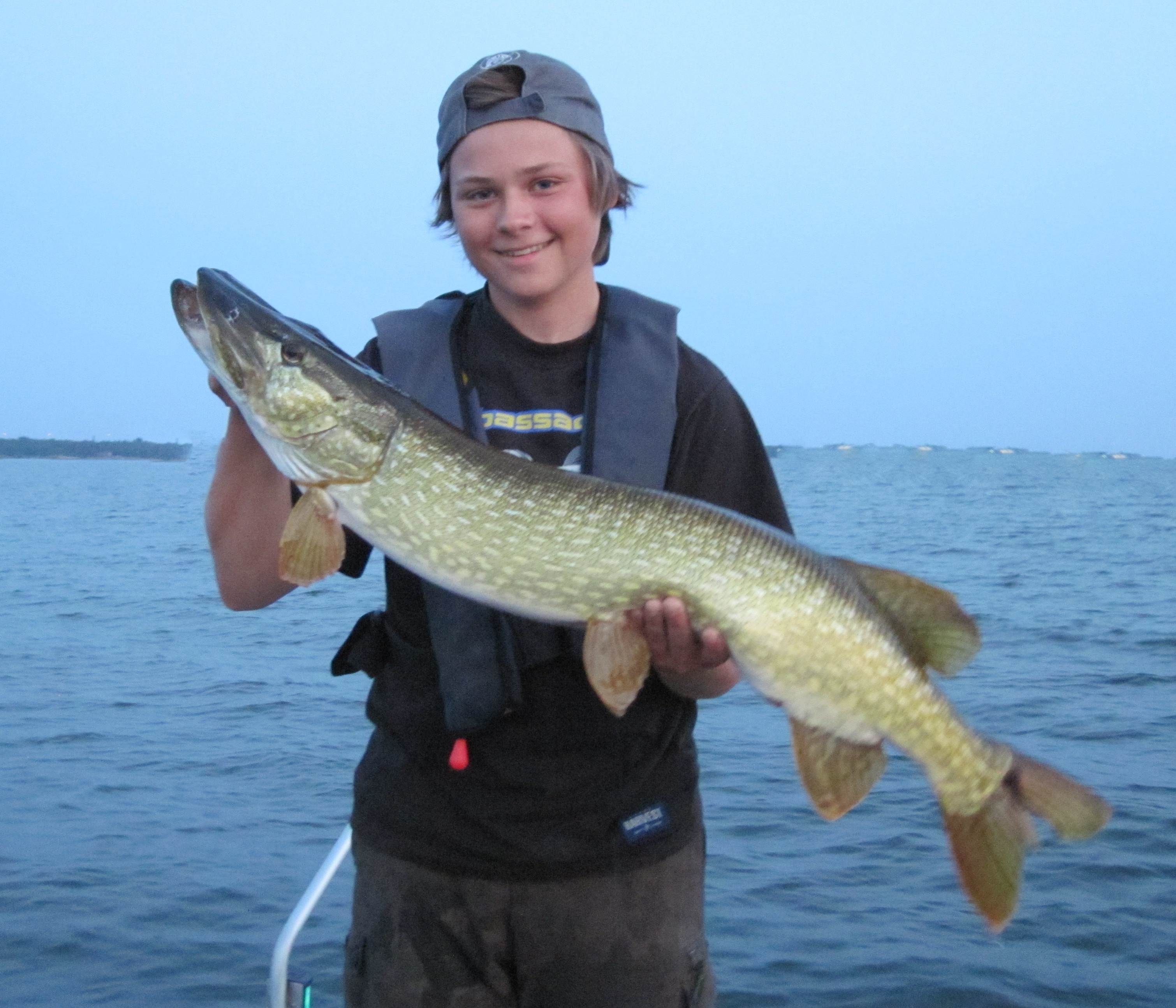 Var även med om något riktigt häftigt, Drillade en gädda i 1-2 kilos klassen när plötsligt en betydligt större gädda närmare sig bakifrån, den simmar sakta bakom med hela vägen in till båten innan den vänder ner i djupet igen. Stundtals är den framme och biter lite i stjärten på den mindre gäddan. Synd den inte valde att kliva på ordentligt !