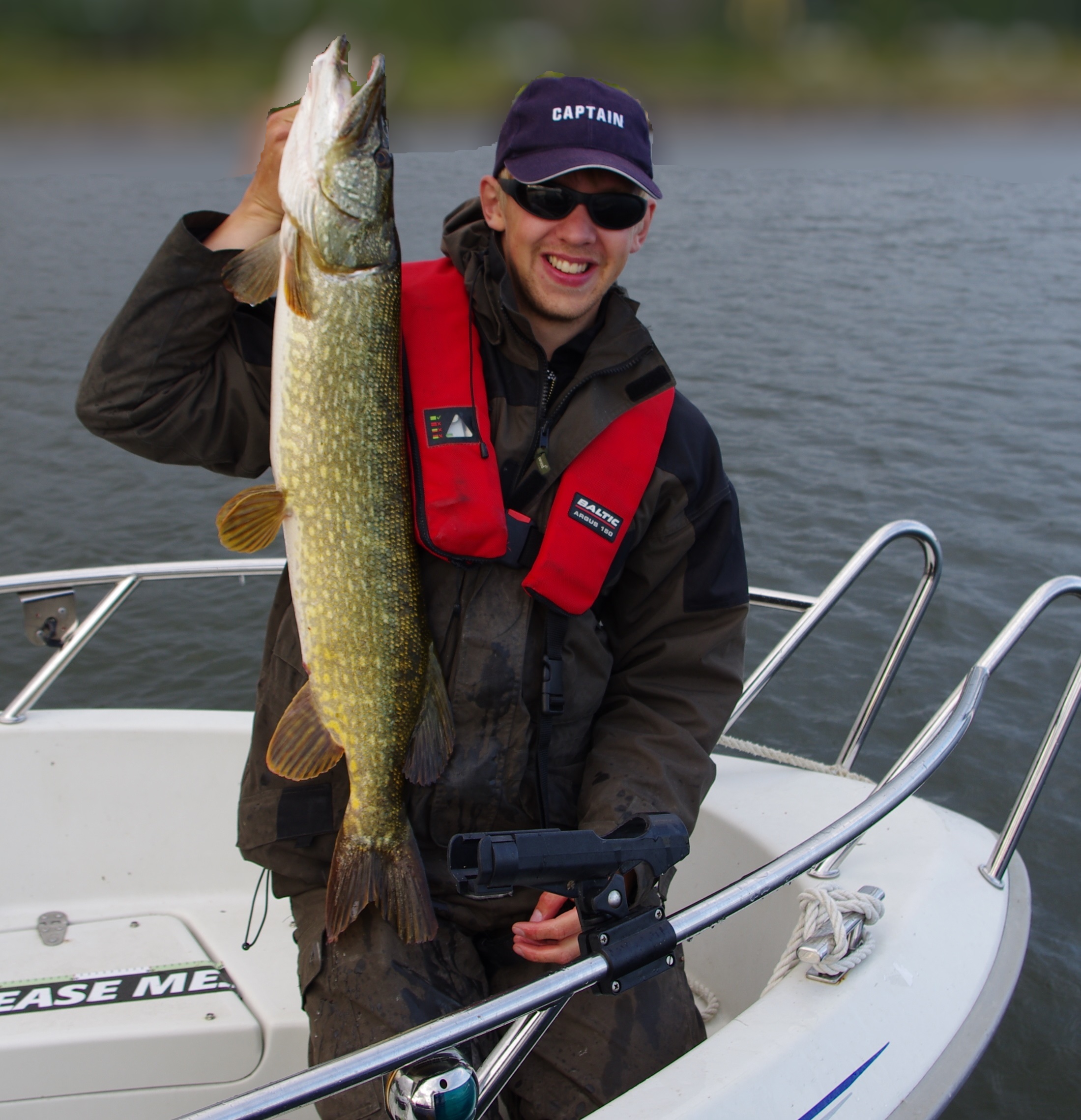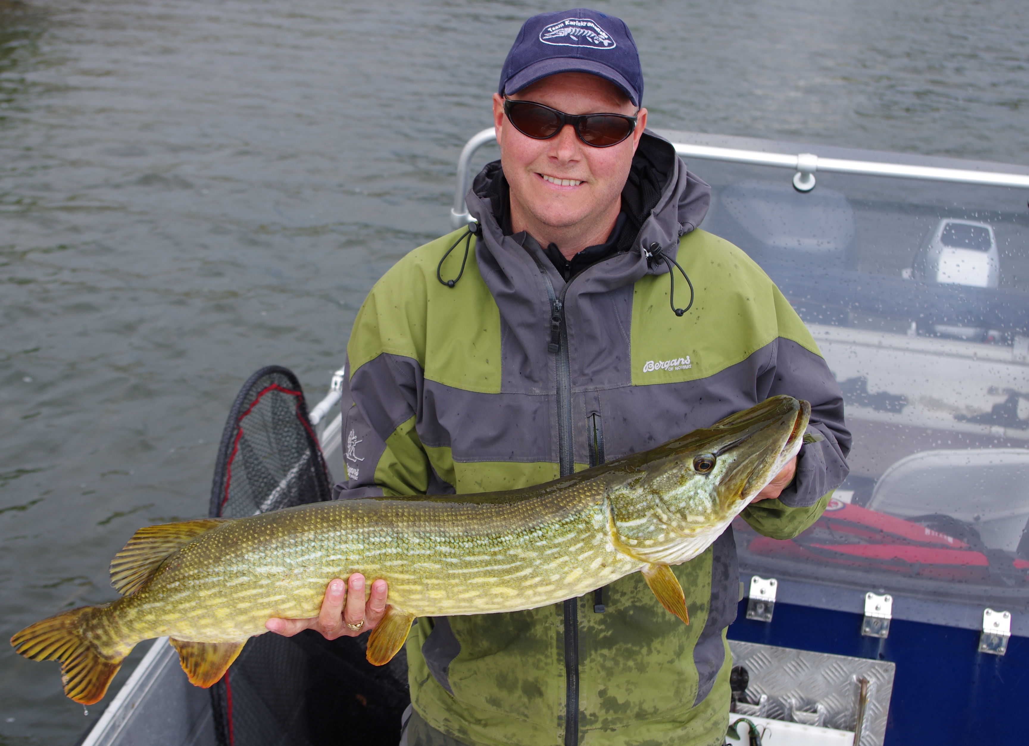 Gäddan är fin och har en längd av 93 cm, kul avslutning på dagen. Vi är hungriga och åker hemåt där vi vet att det vankas varma smörgåsar med champinjonstuvning.