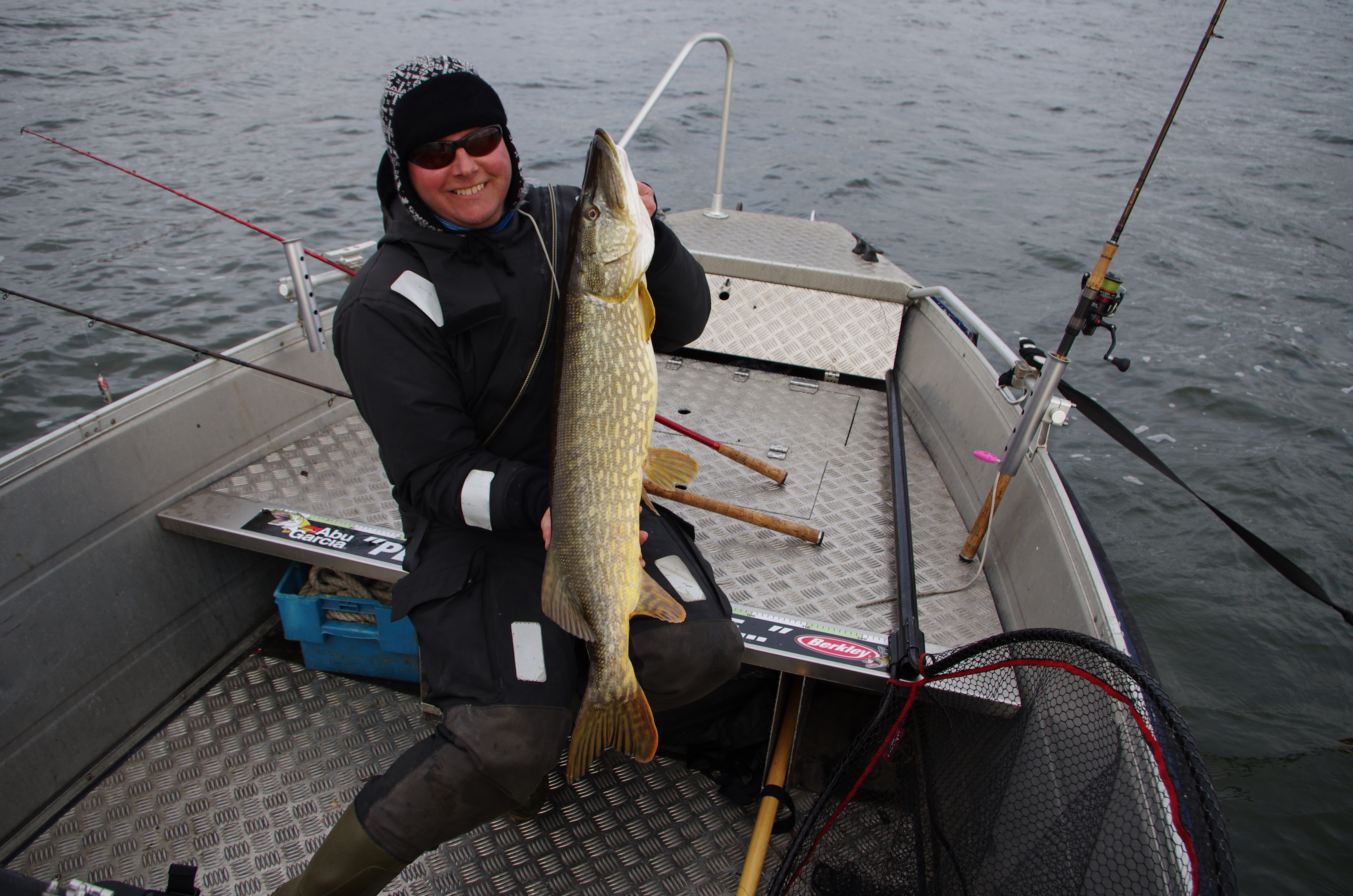 Nu uppe i ottan och ute på sjön redan 07:30 och vi väljer att åka mot kända gäddställen. Det är flera som har samma tankar som oss och vi är inte först, och under morgontimmarna kan vi se en hel del båtar med taggade pikehunters.