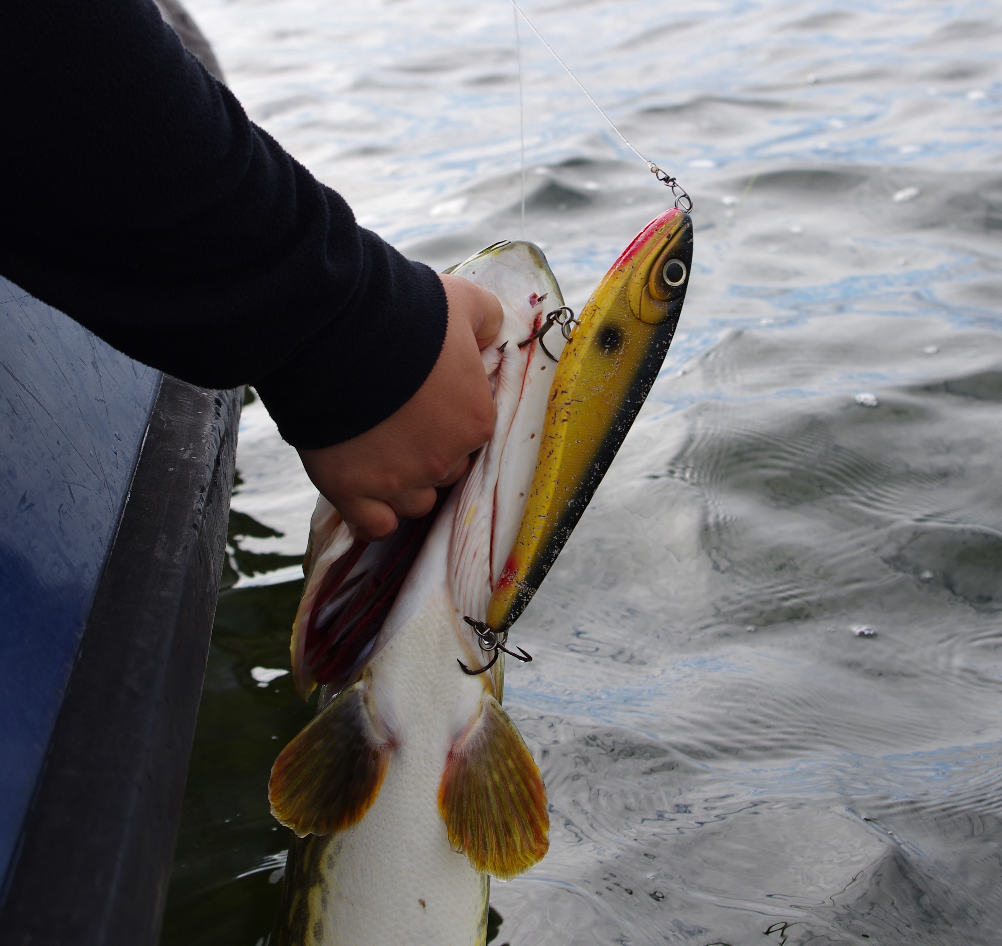 Vi lyckades inte fånga någon toppfisk men vi hade en riktigt bra dag med 34 landade gäddor från 35 cm till 89 cm. Många av huggen var stenhårda och gäddorna var riktigt griniga och starka och ville definitivt inte följa med in till båtkanten för att bli avkrokade.