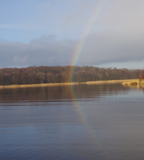 Inga hugg, inga följare och vattnet ligger spegelblankt. Det börjar snöa och regna, vi nöter på men snöfallet hjälper föga. Efter snö och regn visar sig en mäktig regnbåge i det plötsliga solskenet när vi är på väg mot båtupptagningsplatsen.