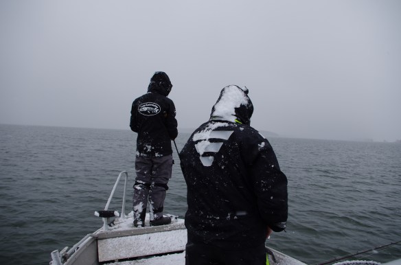 Kallt i vattnet och lite vind var inte de bästa förutsättningar men efter några timmars fiskande i massiv snöstorm lyckas jag peta upp min första Rügengädda, äntligen dags att avsmaka en liten hutt Minty som var belöningen efter hårt slit.