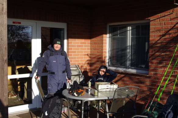 Väl framme i Shaprode åkte vi till Landkogge och lastade av fiskeutrustningen och pratade med ställets värdar Simone & Frank.