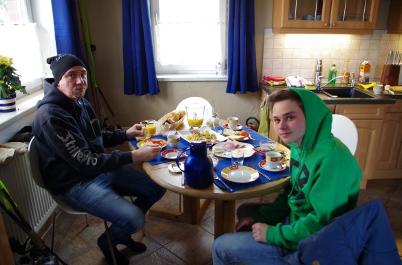 Ännu kallare denna morgon så vi väljer att stanna i sängen och äta superfrulle klockan nio istället. Frank och Simone har fixat scrambled egg och bacon till oss. Fantastisk service.