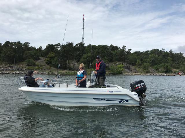 Med lite tur så råkar vi komma till en liten vik med klart vatten och vi kan se abborrar. Willy har en liten vobbler och lyckas faktiskt landa dagen första fisk. Tyvärr inte rätt art men vi är glada över lite action i båten.
