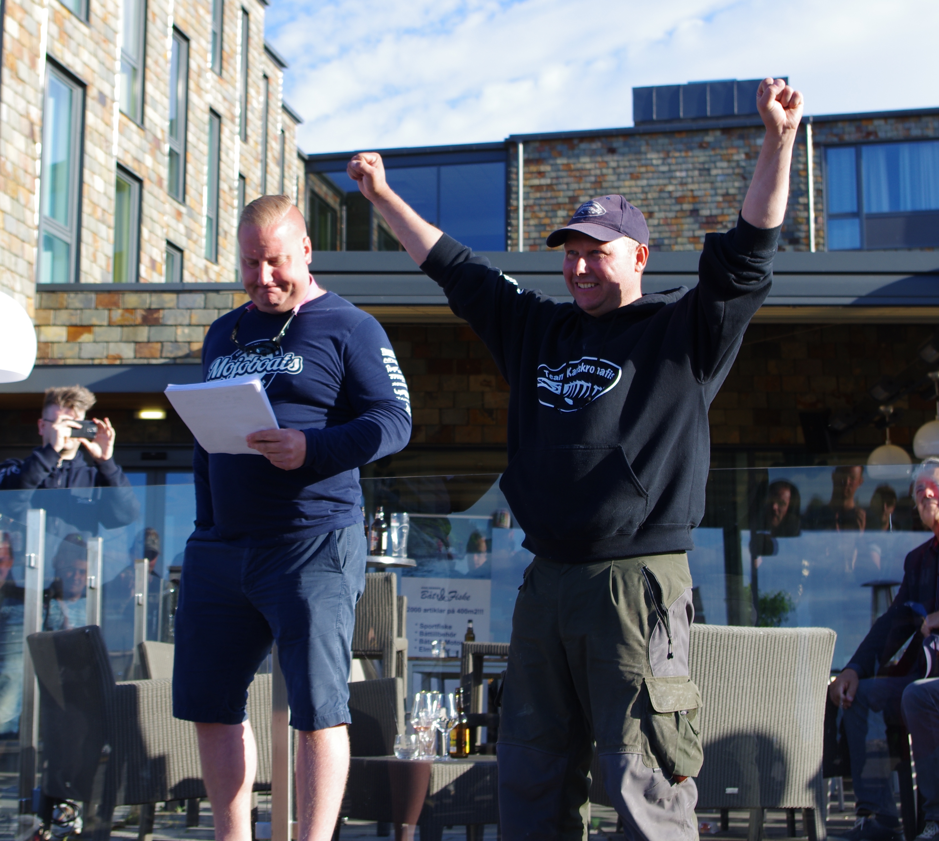 Efter detta har vi faktisk chans till seger men vi ser att Team Bulk också fiskar bra och närmar sig med stormsteg. Vi fortsätter enligt planen. Kontakterna är få men efter några timmars idogt kastande landar Viktor en 92:a. Såja nu känns det bra. Och vi tror att vi kommer att hamna topp tre med våra infiskade 461 cm.