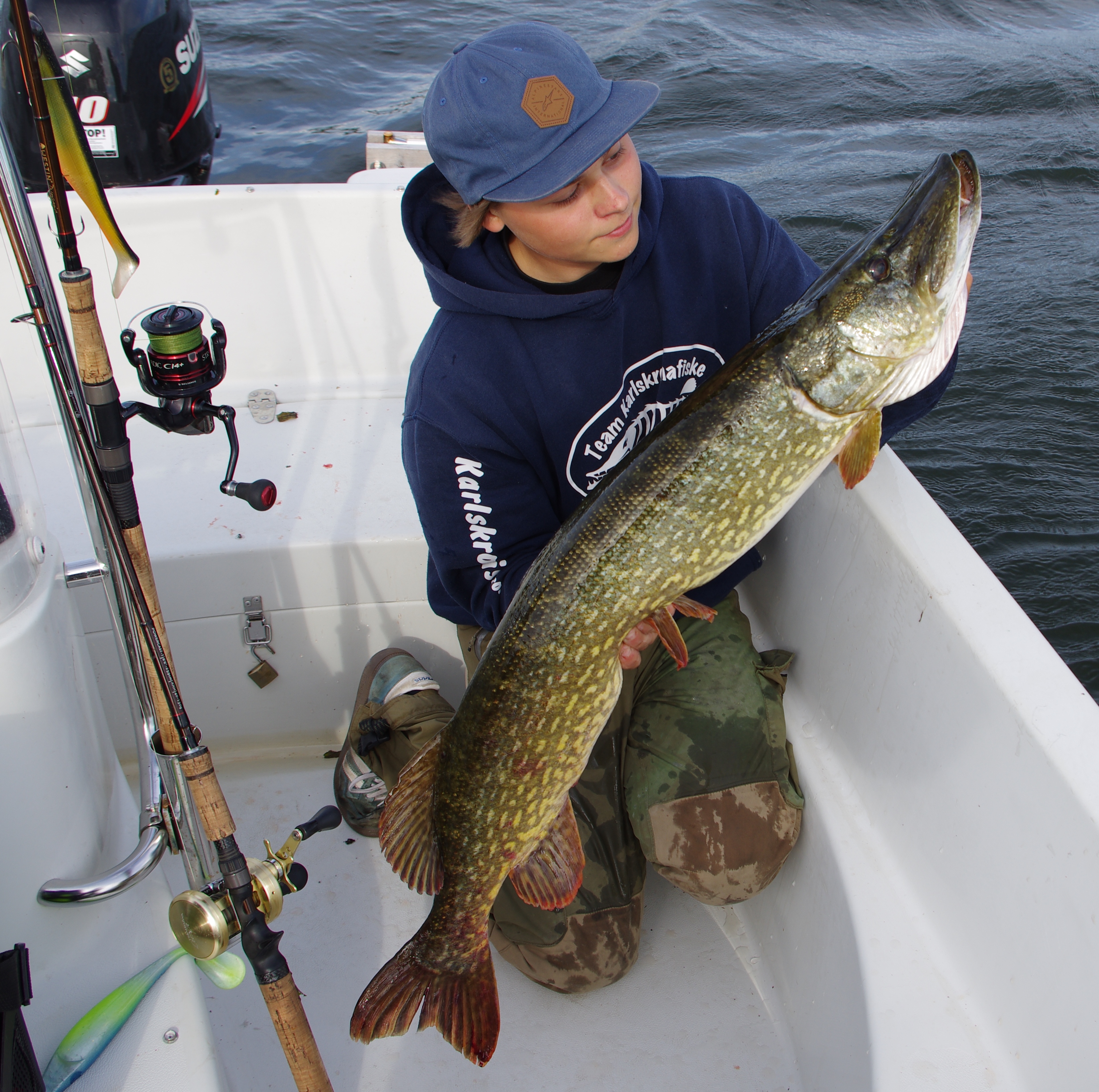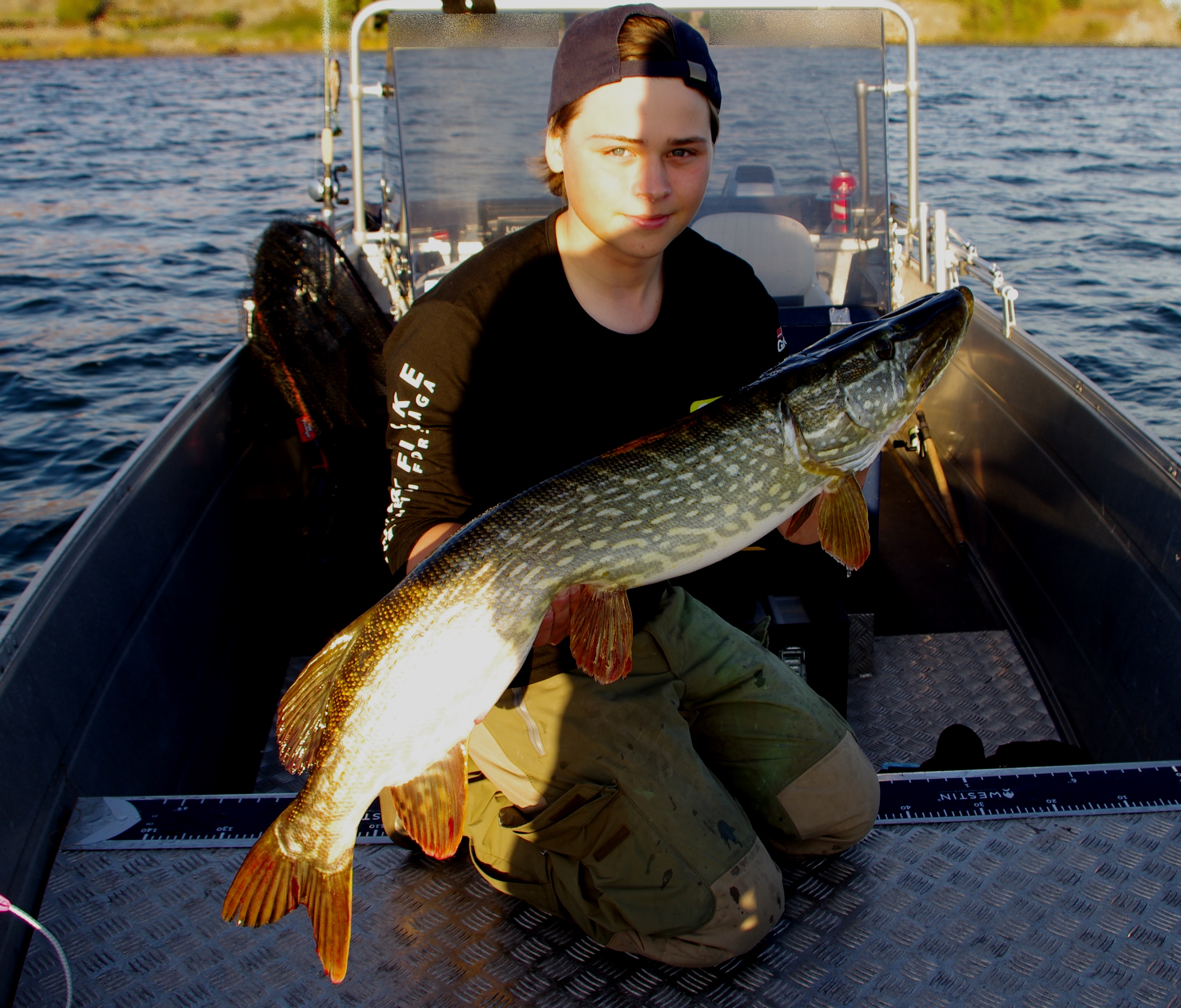 Längsta gäddan har jag landat och får komma fram och hämta ett SM bete och en T-shirt.