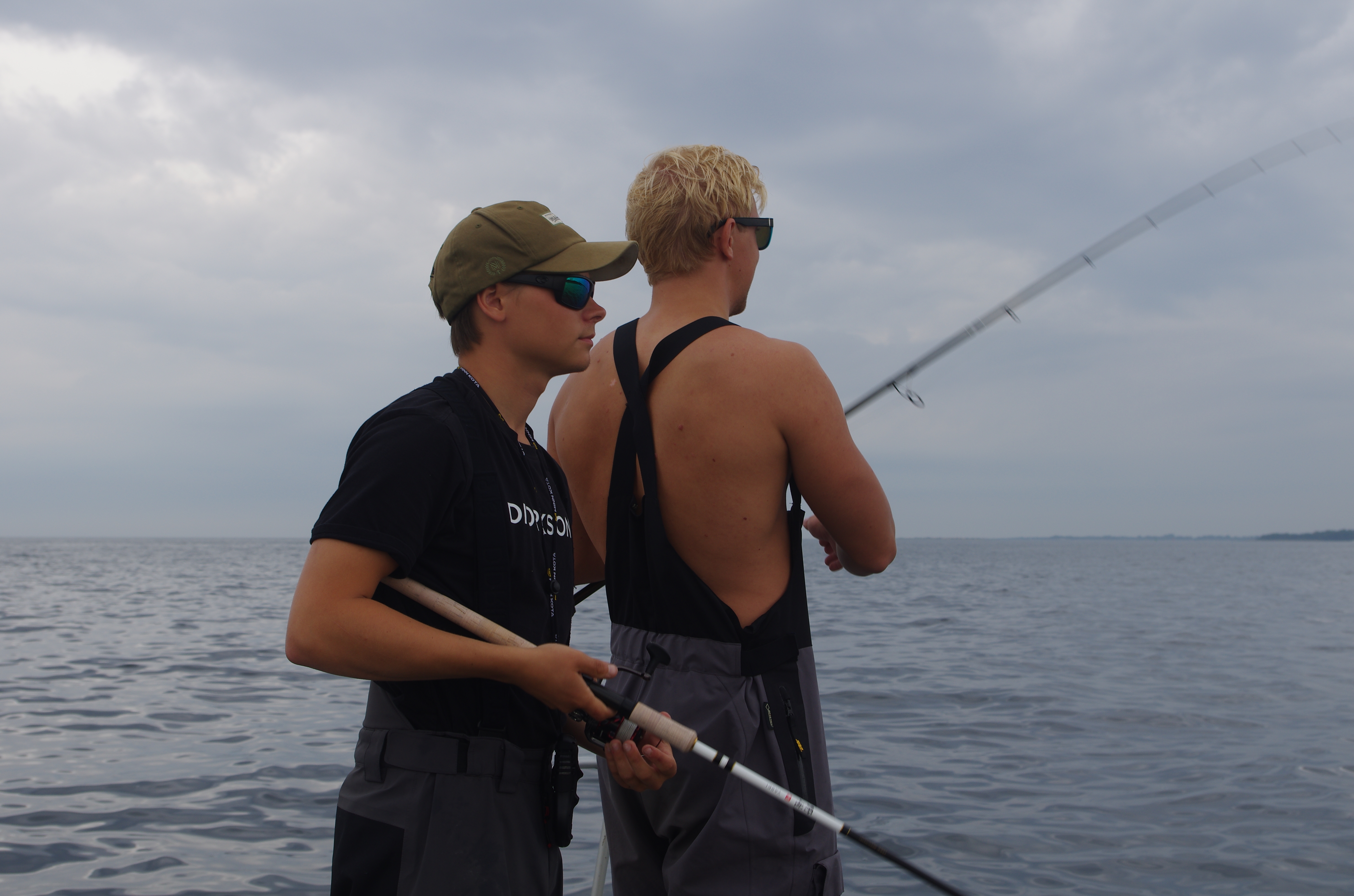 Det börjar riktigt bra och vid lunchtid har vi fångat tre fina fiskar mellan 80-90 cm och vi kan se på liverapporteringen att vi ligger på plats 2. Det finns några lag som lätt kan gå om oss om de lyckas fylla pappret så det är riktigt nervöst.