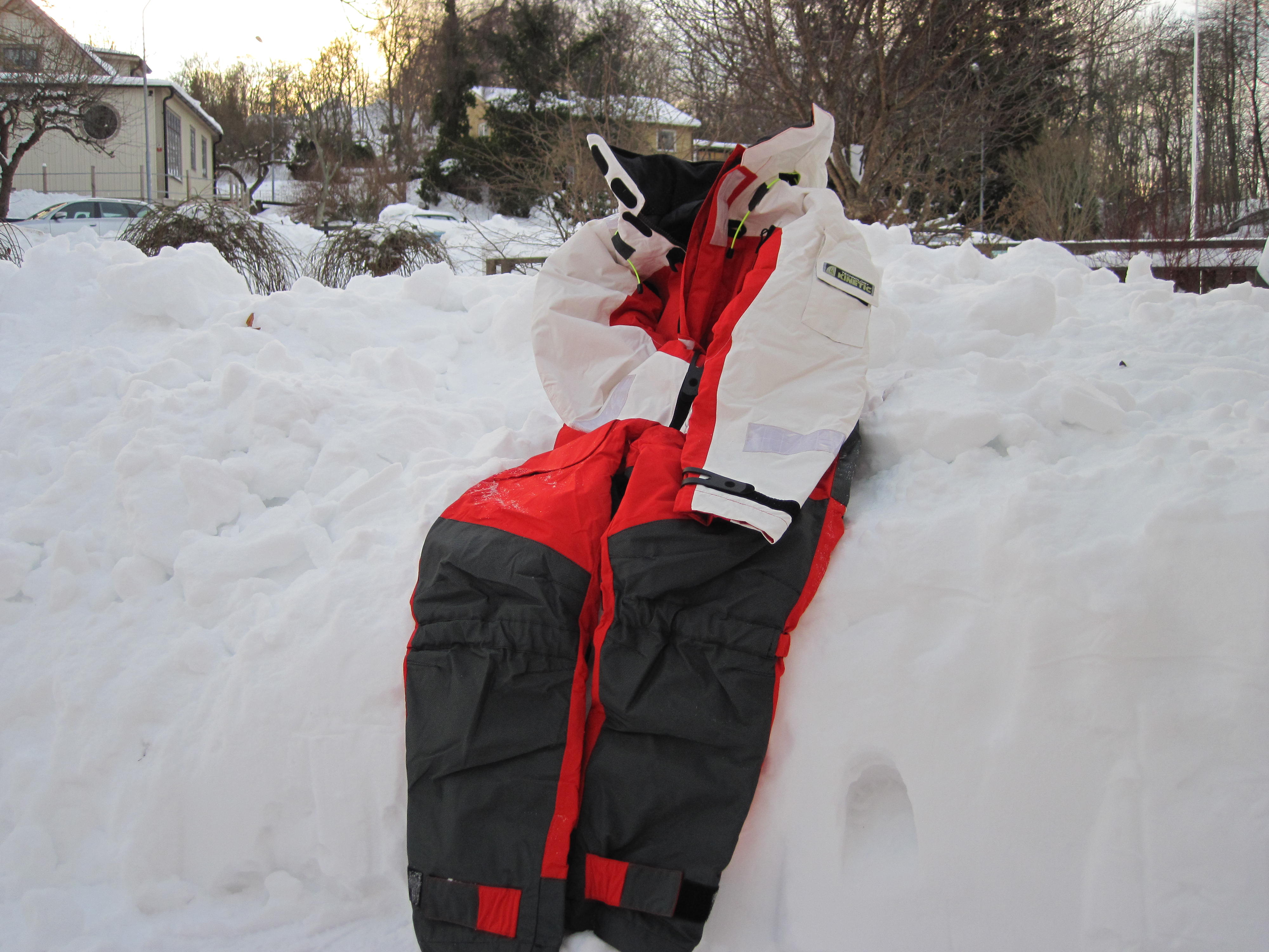 En efterlängtad flytoverall av märket (Kinetic Wavecruiser X8). Den blir varm, torr och mysig att ta på sig vid nästa fisketur.