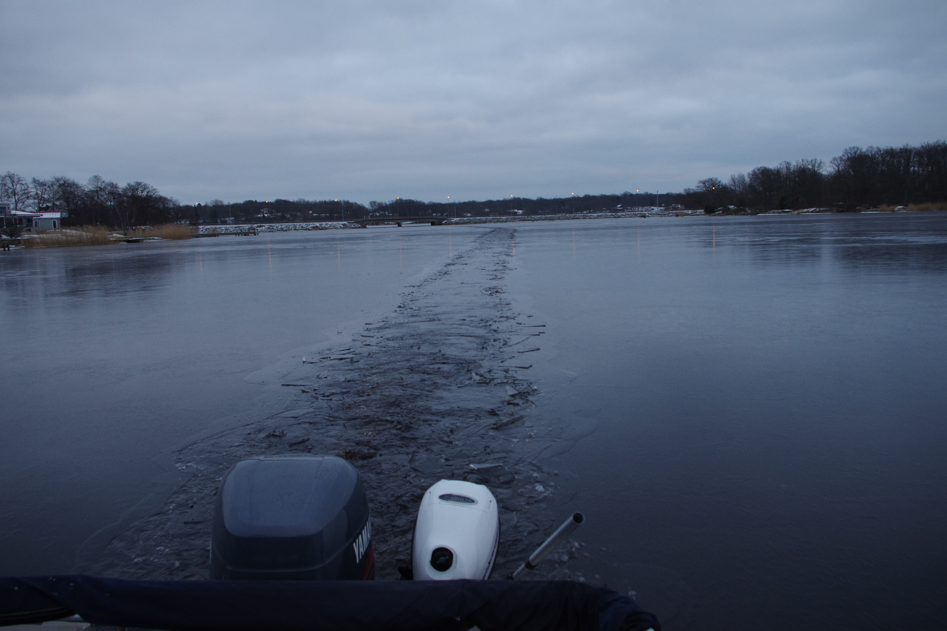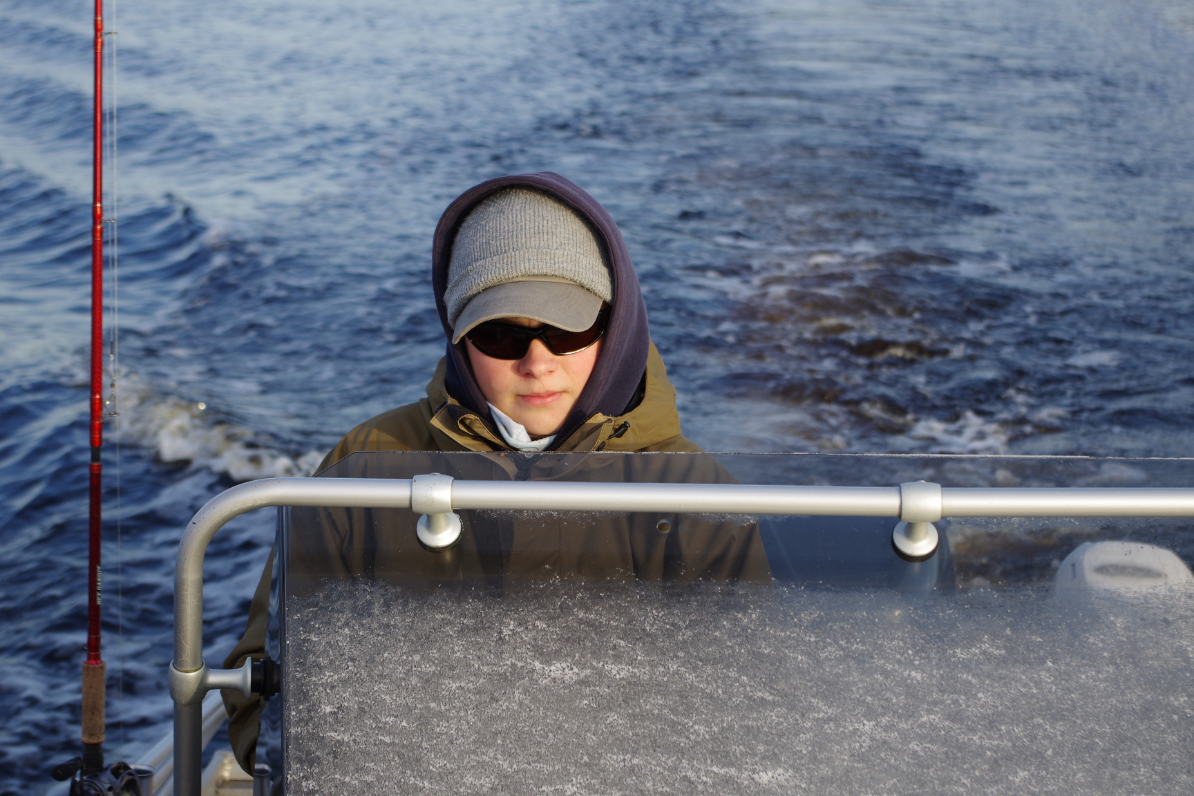 Tiden går fort och vi avbryter gäddfisket vid tretiden för att ta oss hemåt genom den nu gropiga sjön.