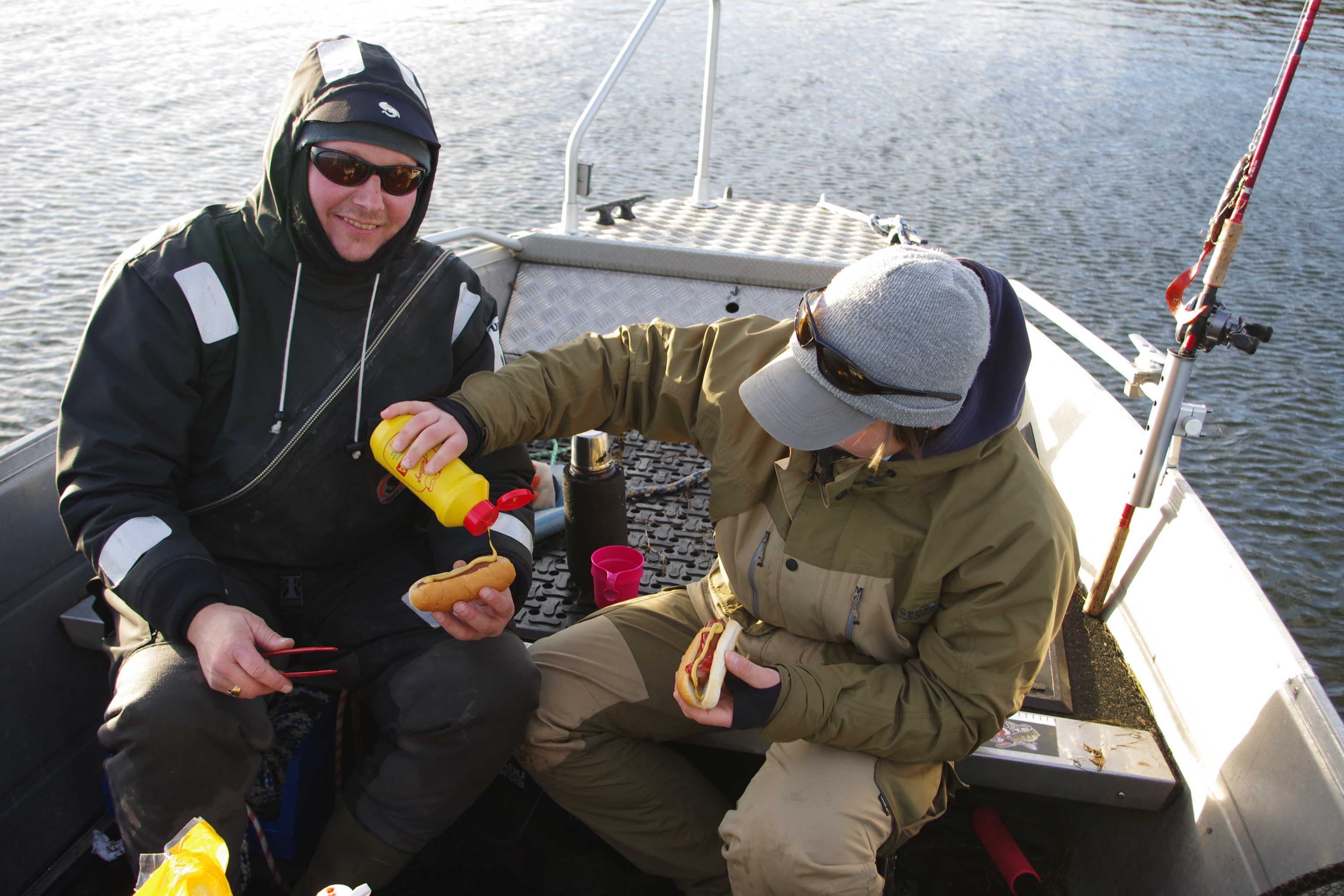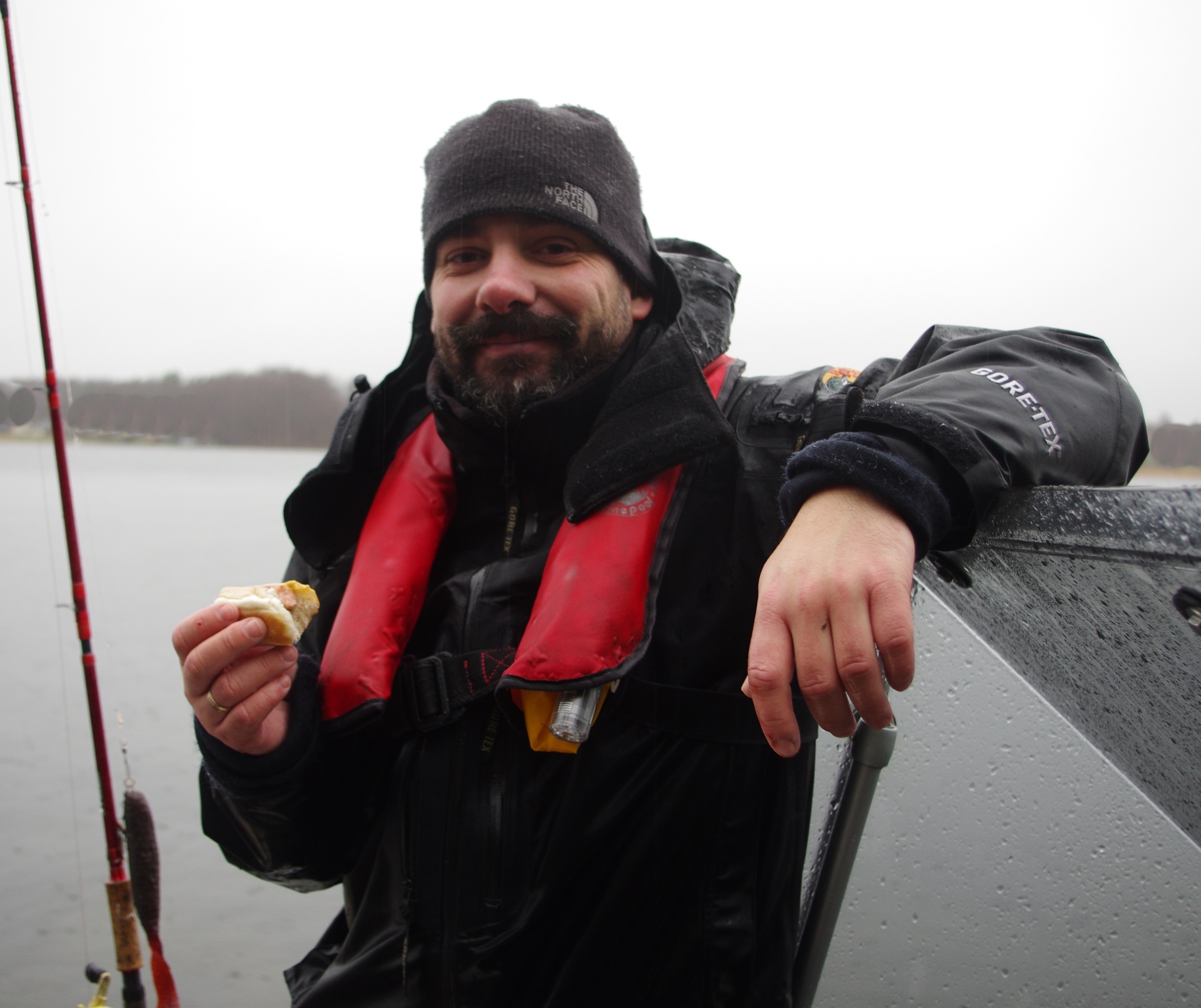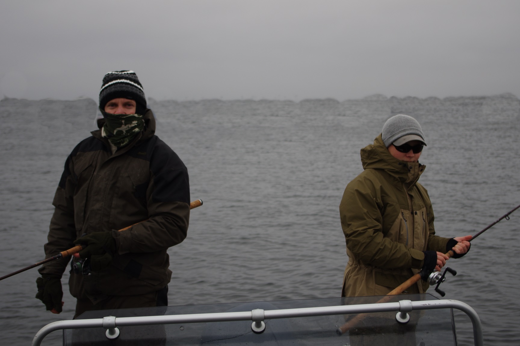Dagen kan man sammanfatta kort: Vansinnigt blött, Kalla och fuktiga russinfingrar, timmar av frustration, lycka och glädje över landade fiskar, supersmaskiga korvar och en förbannat trevlig dag på sjön.