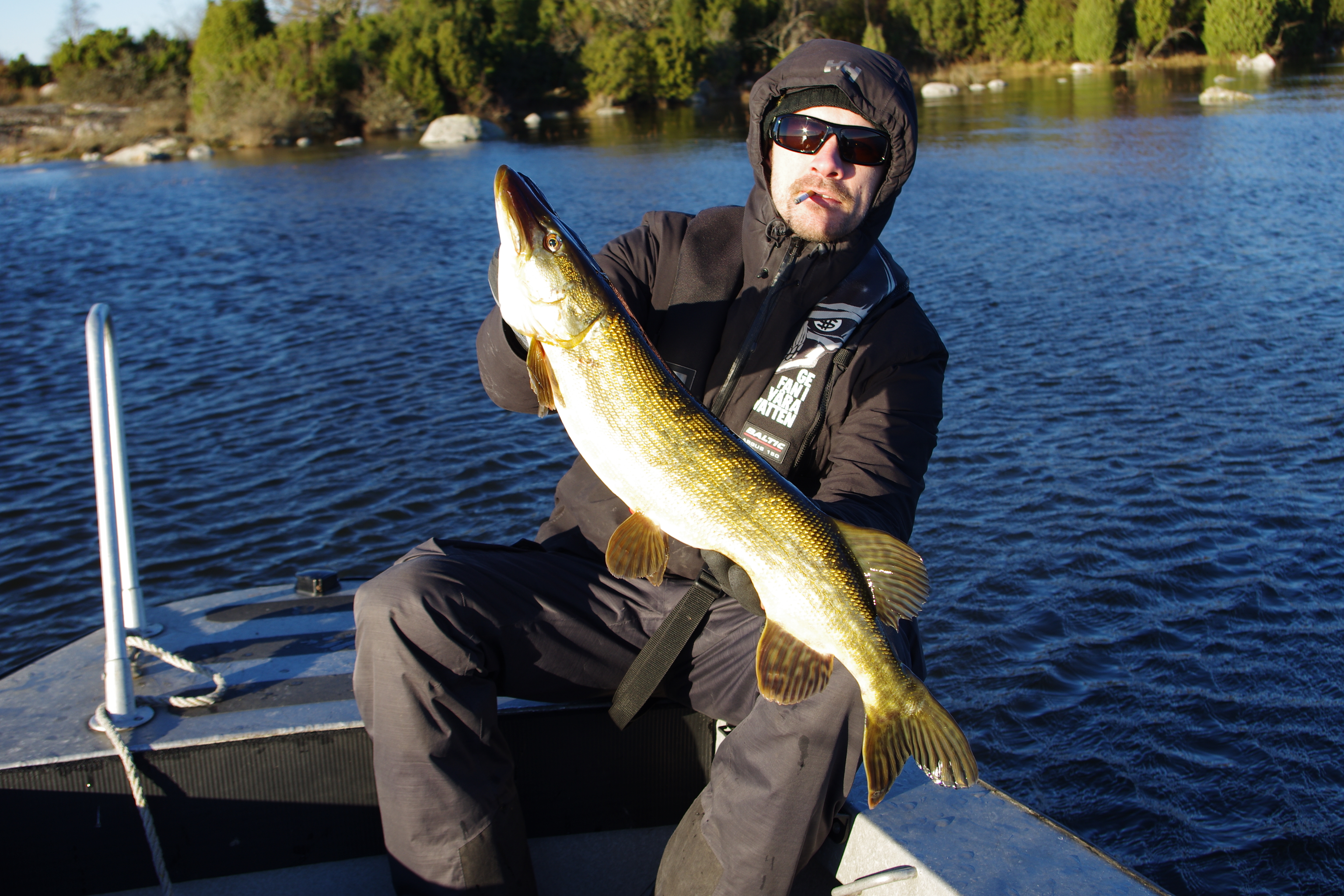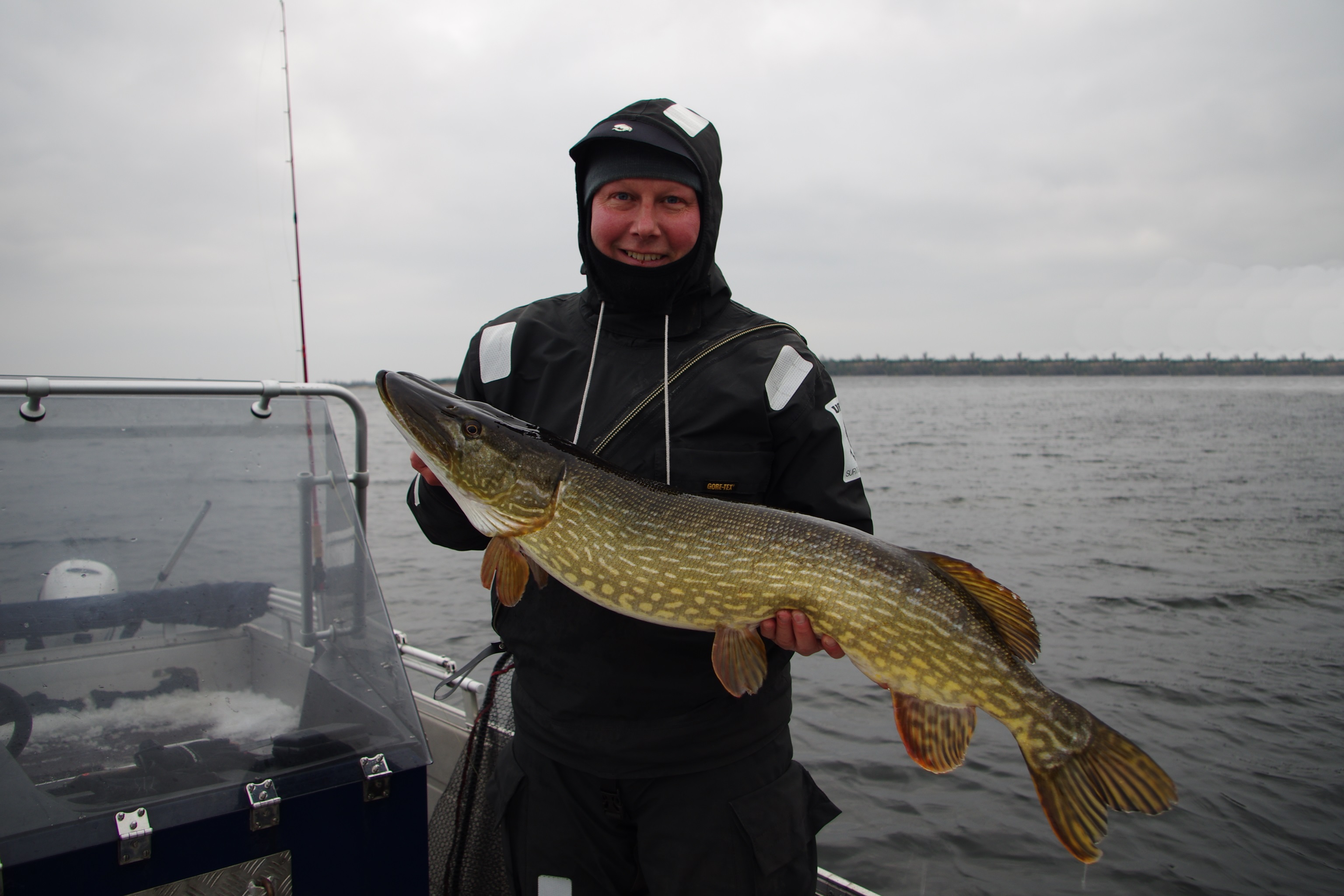 Stärkta av korvfikan och alla påslag och kontakter har vi glömt bort våra blöta och bortdomnade fingrar och nöter på i vinden som maskiner. Många fina gäddor landas och det känns i maggropen att snart kliver den riktiga madamen på. Vi har några bra hugg som kan ha varit bättre fisk men vi landar mest gäddor mellan 70-88 cm.