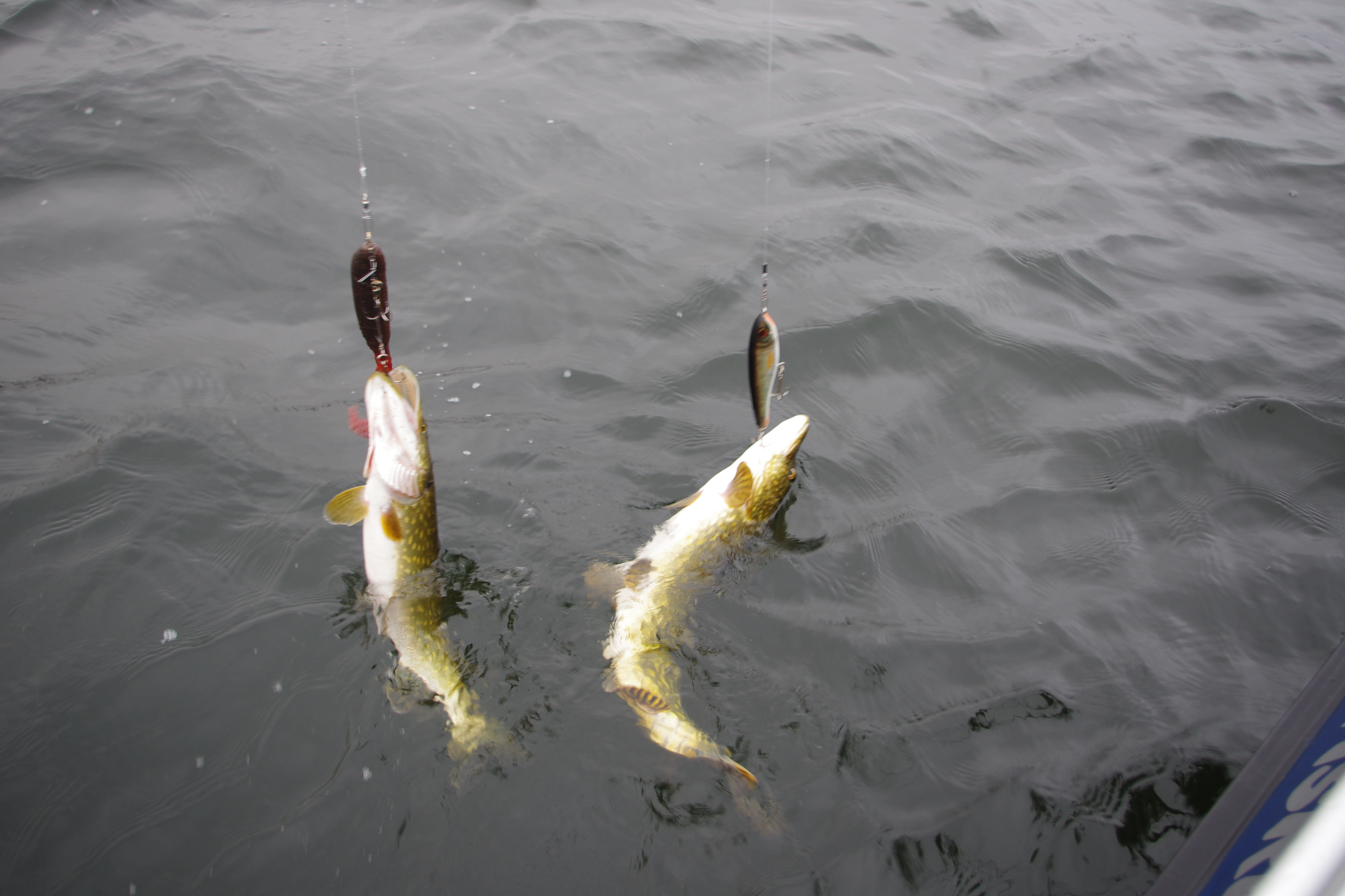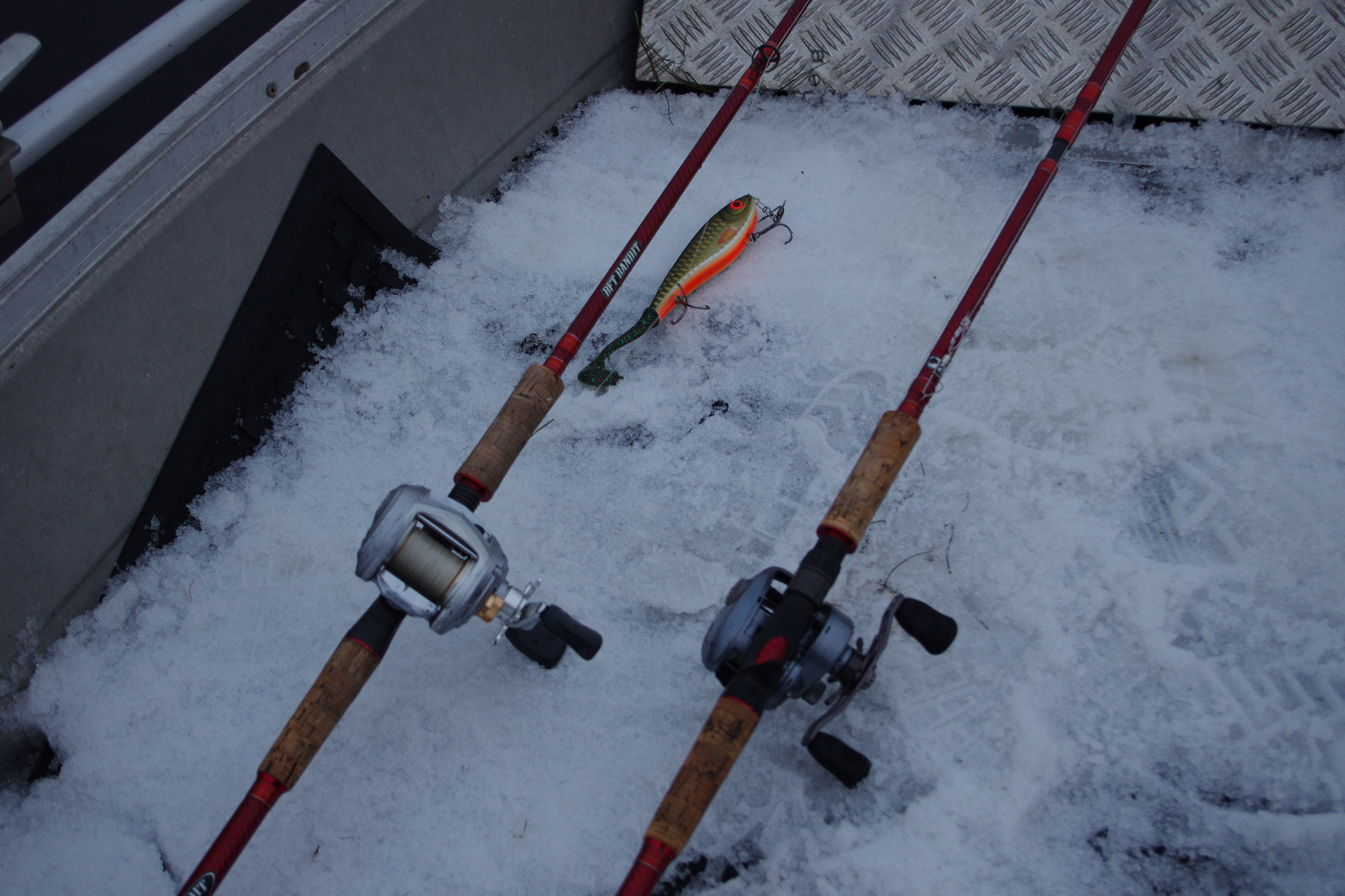 Våra tankar är synkade och vi tänker precis lika. När jag startar motorn och puttrar ut till 1,7 meterskurvan så ler Jens och slungar iväg sitt jerkbait. Pang och smack i backen som Trumman säger. Nu smäller det på och storleken är betydligt bättre. Jajjemen äntligen har vi hittat gäddornas ståndsplats för dagen.