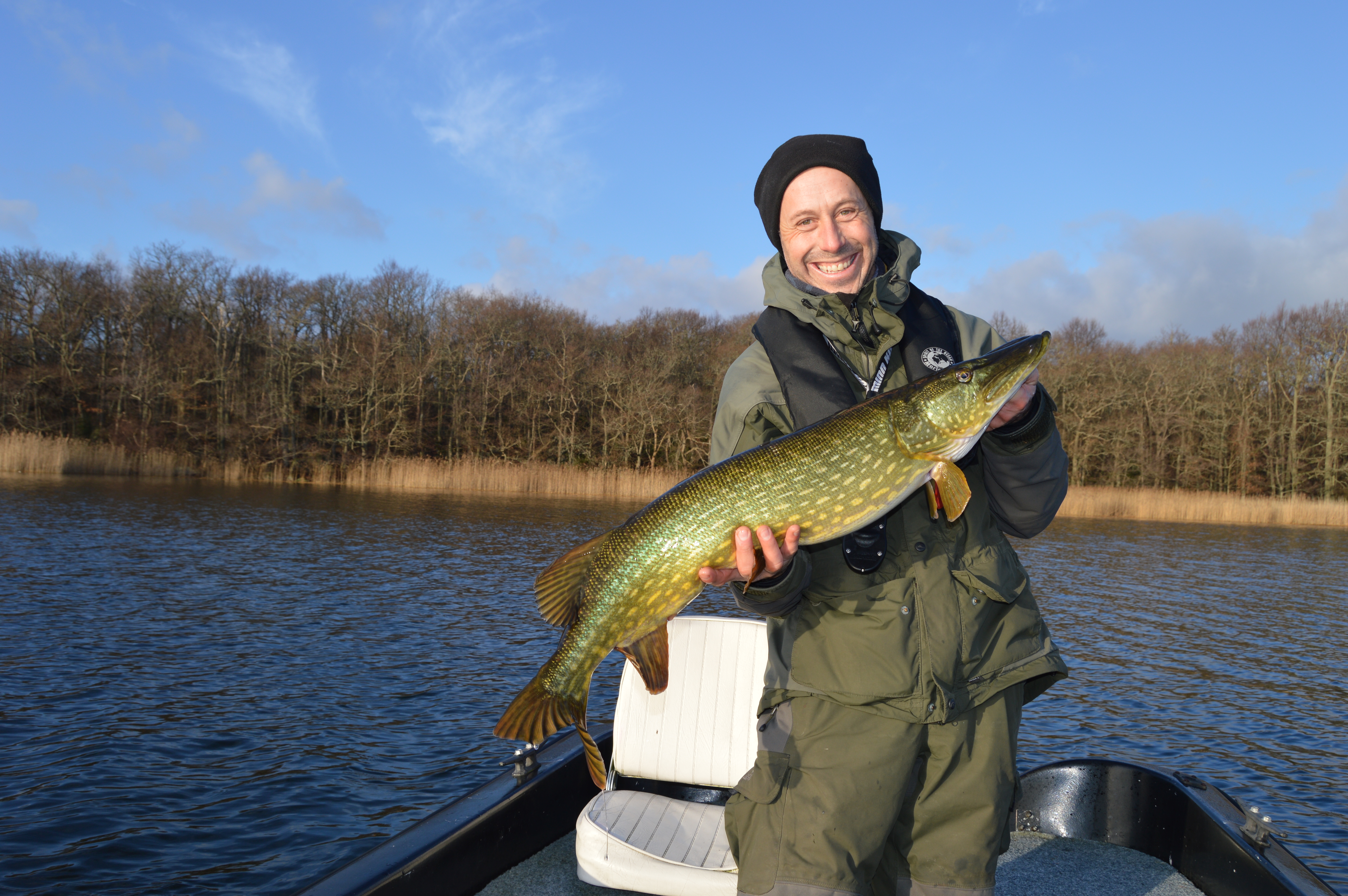 Mitt självförtroende stärks när jag landar dagen största gädda på fina 95 cm och jag börjar fiska bra. Vi har vittring på metersfiskar och Jens har ett par fina följen så vi har knappast tid att fika. Jag tänder upp spritköket och kokar korvarna i båten för att inte gå miste om värdefull fisketid.
