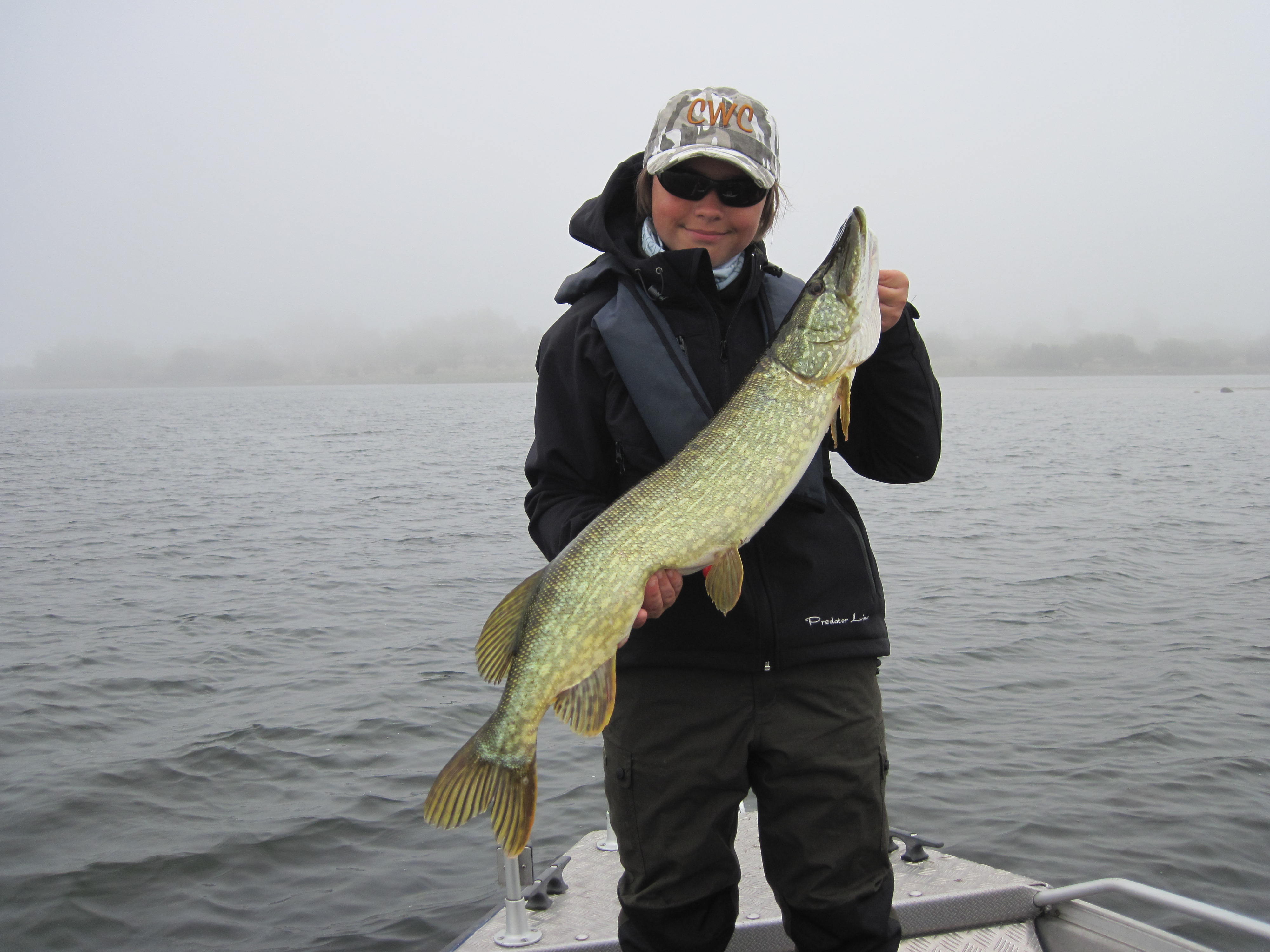 Kvällen var fantastisk men gick alldeles för fort, rätt som det var upptäckte vi att det var riktigt mörkt och kontakterna med gädda var inte så täta. Vi var outtröttliga och vägrade att ge upp. Nu var den stora frågan om gäddorna kunde se våra beten i det mörka vattnet. Svaret kom efter lite nötande. Pang!! ett stenhårt hugg i mörkret och det var omöjligt att se någon storlek på fisken förrän hon lyftes ombord för fotografering.
