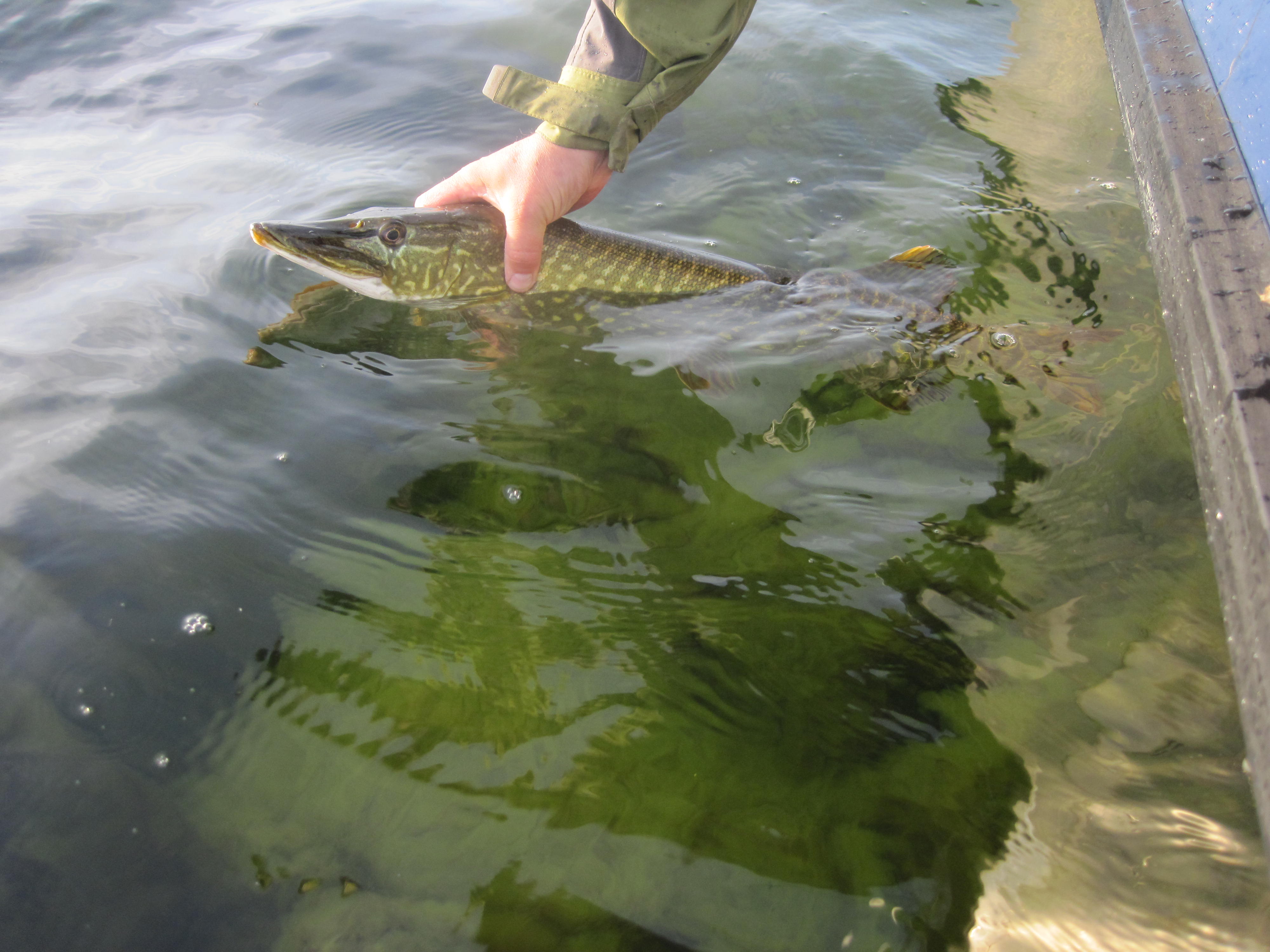 När storgäddan hade tämjts så kunde den fotograferas med bättre resultat. Kalle hade säkert ont i handen efter gäddans vridningar.