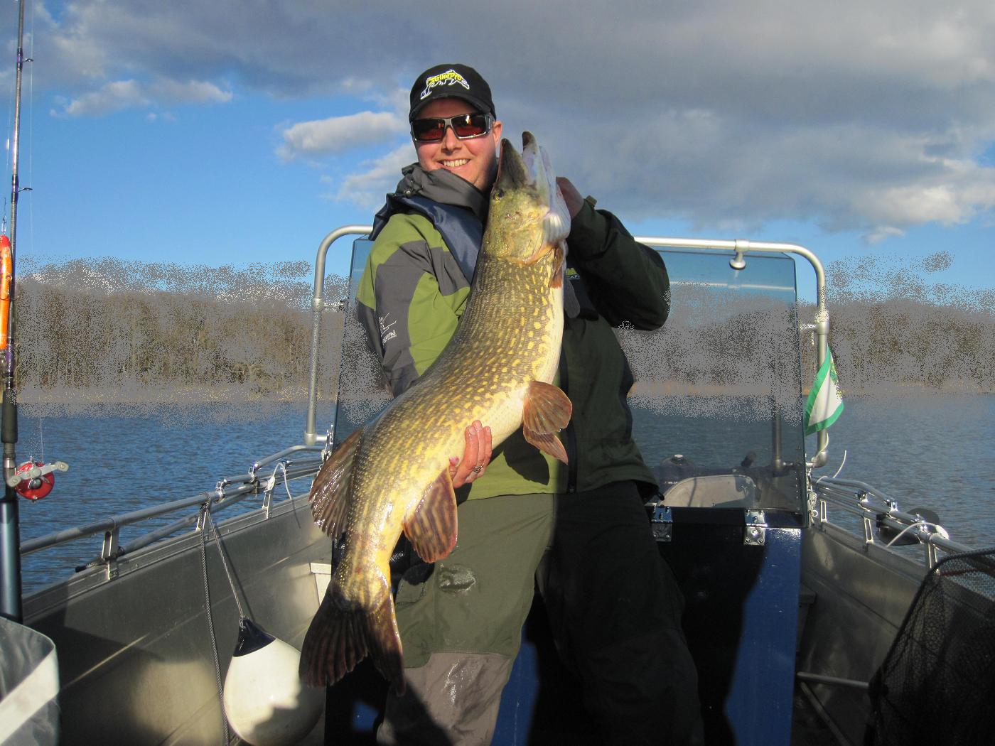 Oj Oj Oj vilken bjässe som kom och hälsade på för vägning och fotografering. Vilken fantastisk känsla att få landa en gädda över metern.