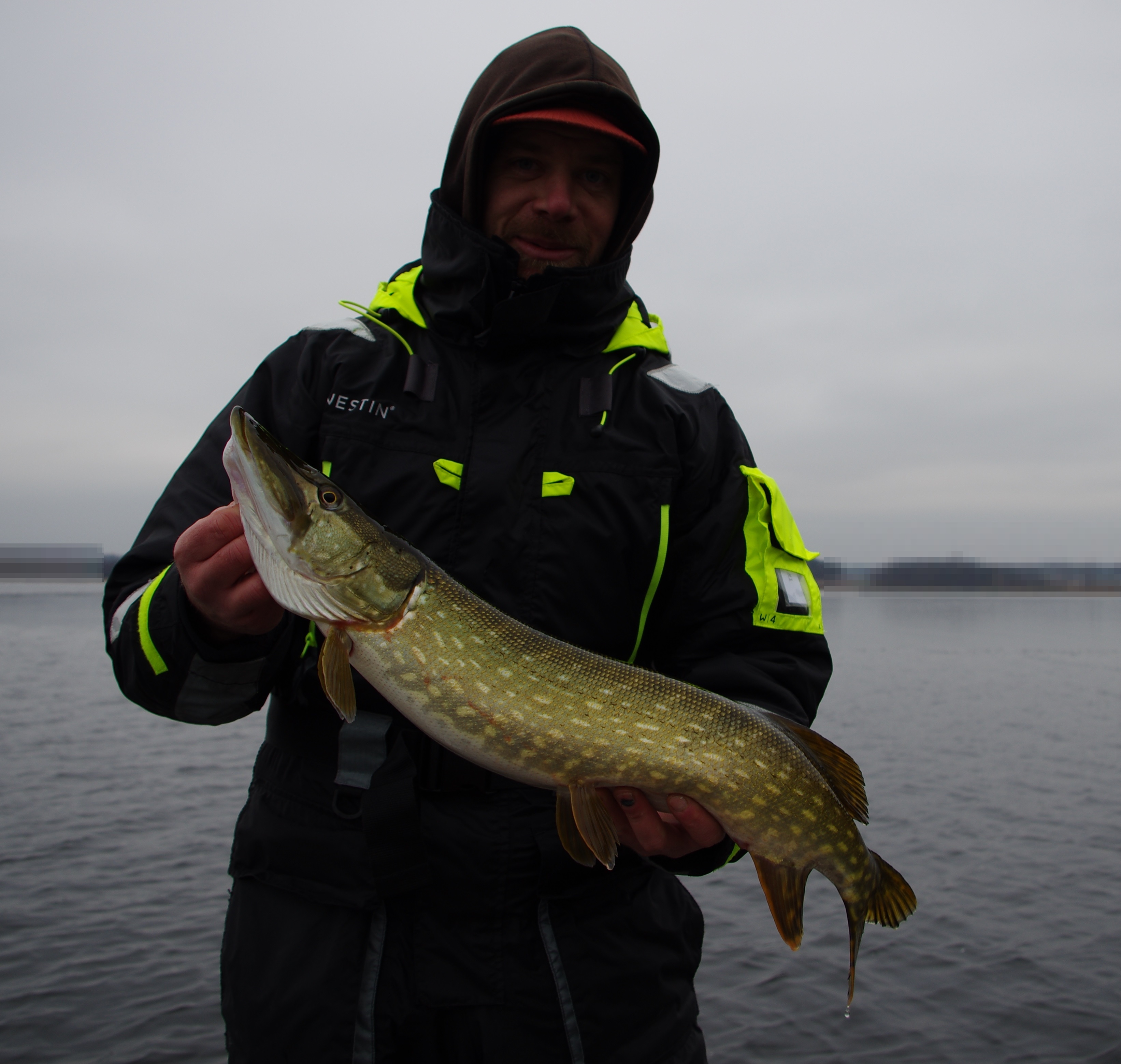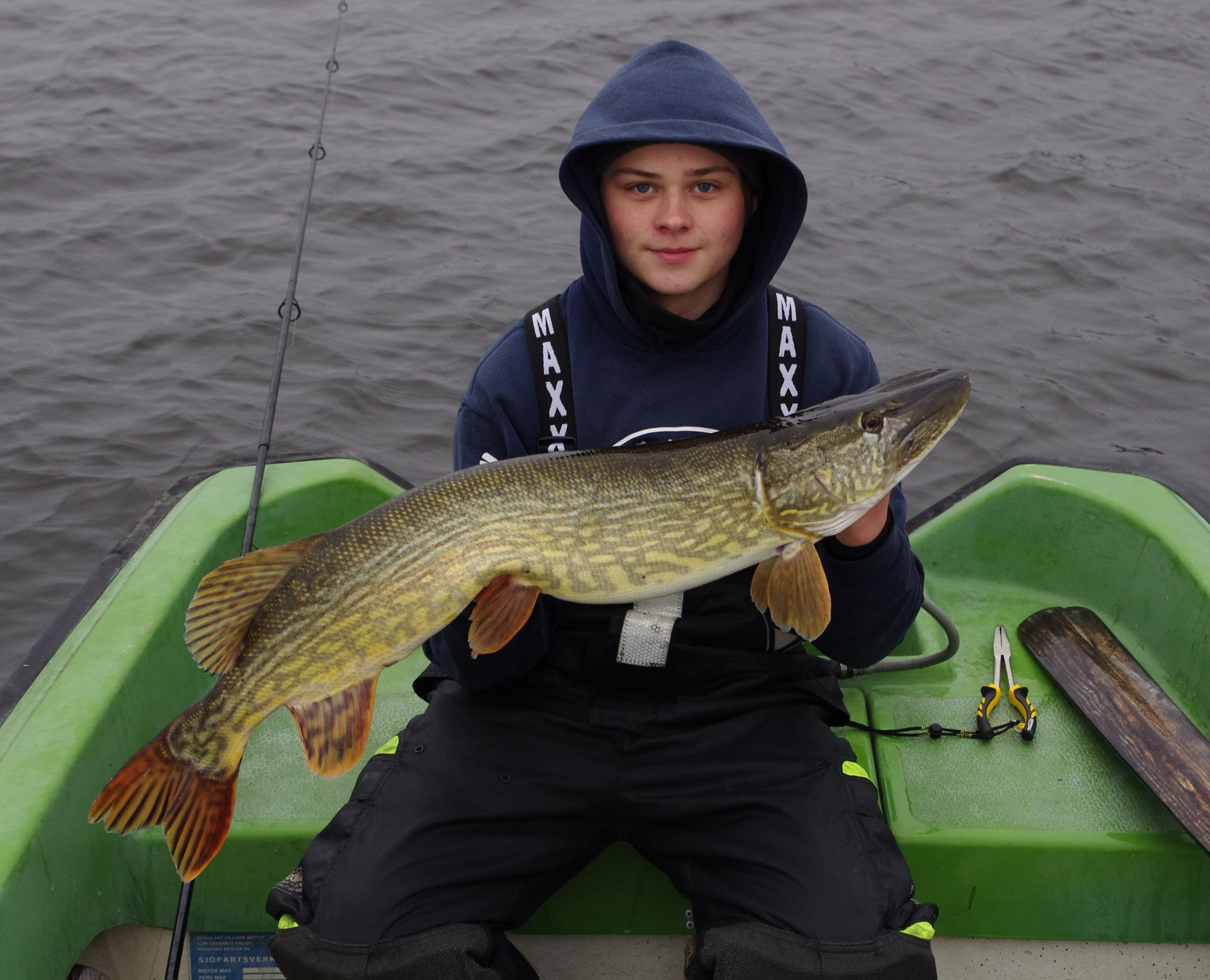 Väl på plats blir vi smått överraskade av att vi är själva och vi kastar i två drivankare och lägger en drift för att lokalisera om gäddan finns i området. Jajjemen visst är det så! Inom loppet av två timmar har vi fiskat ihop 455 cm och är i ledningen.