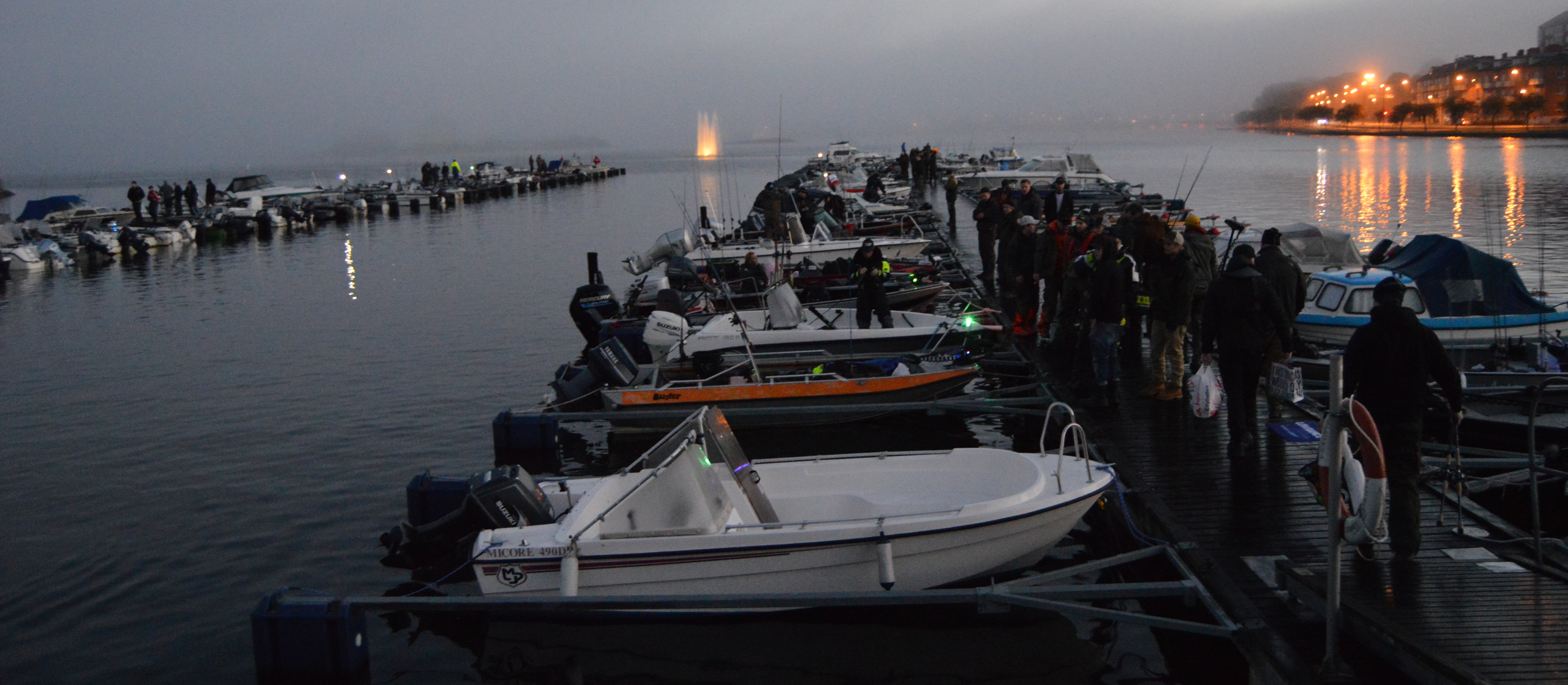 Båtar och fiskesugna mannar och kvinnor samlades framför Scandics uteservering för den traditionella nationalsången innan starten gick klockan 09:00.
