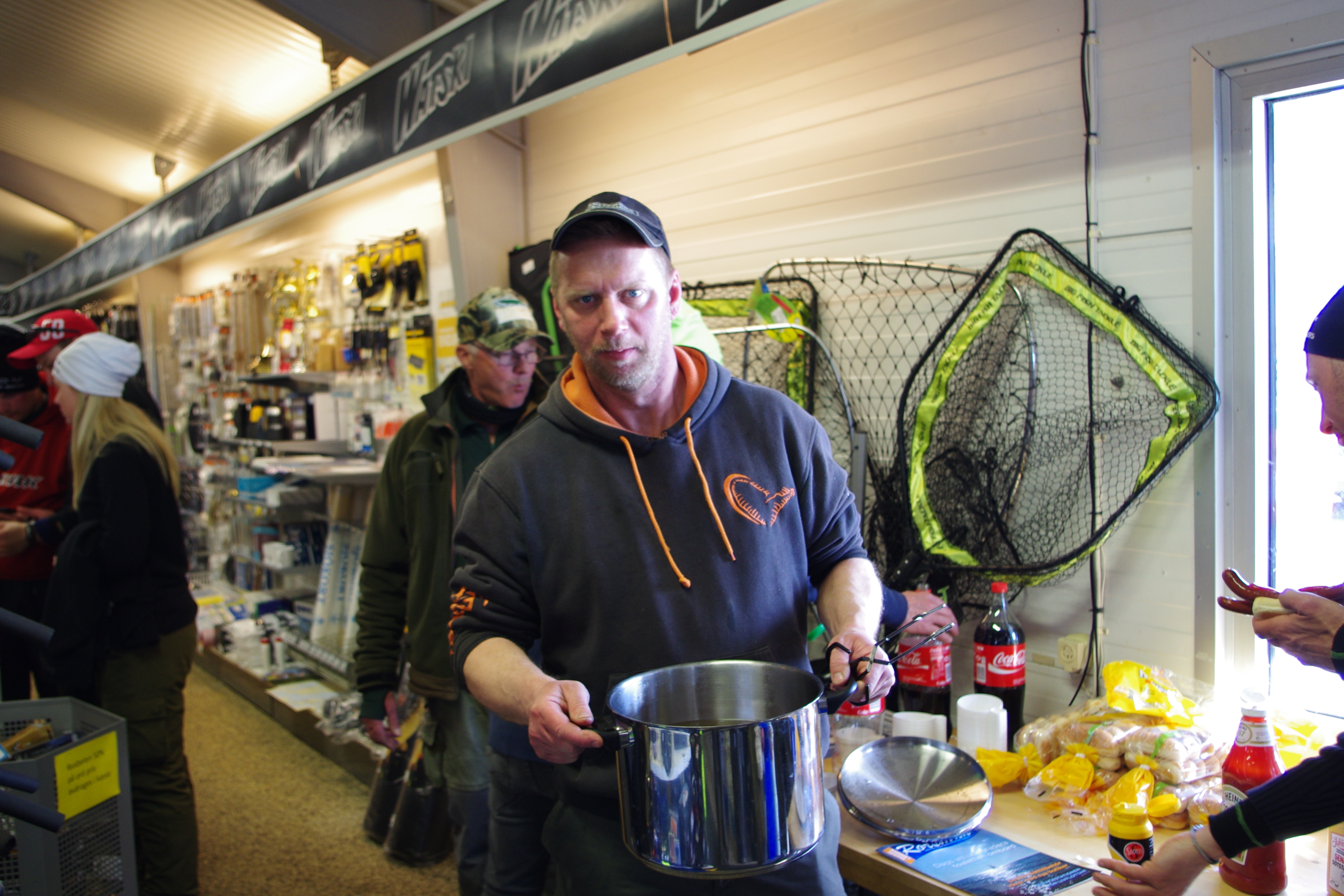 Det nöts på och även några beten hamnar på avbytarbänken men det är riktigt trögt. Vi fikar under de korta förflyttningarna för att inte missa fisketid. Vi har fortfarande inte 5 mätbara gäddor men vi följer våran plan slaviskt och plötsligt ger detta resultat. Ännu en fläck med tre gäddor landas med en topp på 92 cm. Fångsten ger oss en längd av 405 cm och vi känner oss lugna och säkra på att vi kommer att gå vidare i kvaltävlingen.