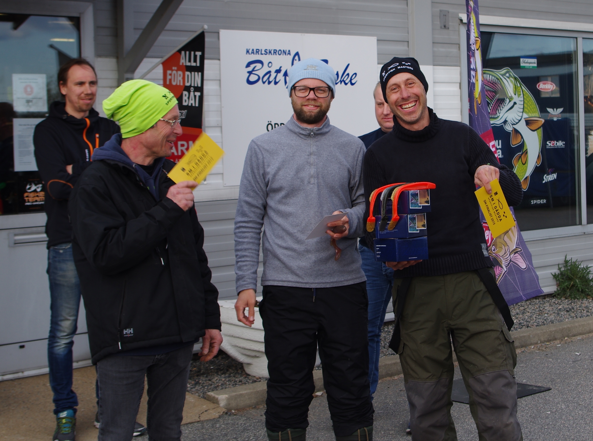 Tävlingen är inte slut ännu utan vi fiskar vidare under ett par timmar och lyckas byta ut några minder gäddor och hamnar på 412 cm när vi avbryter och återvänder till Karlskrona Båt&Fiske för att lämna in kamerans SD kort till tävlingledningen.